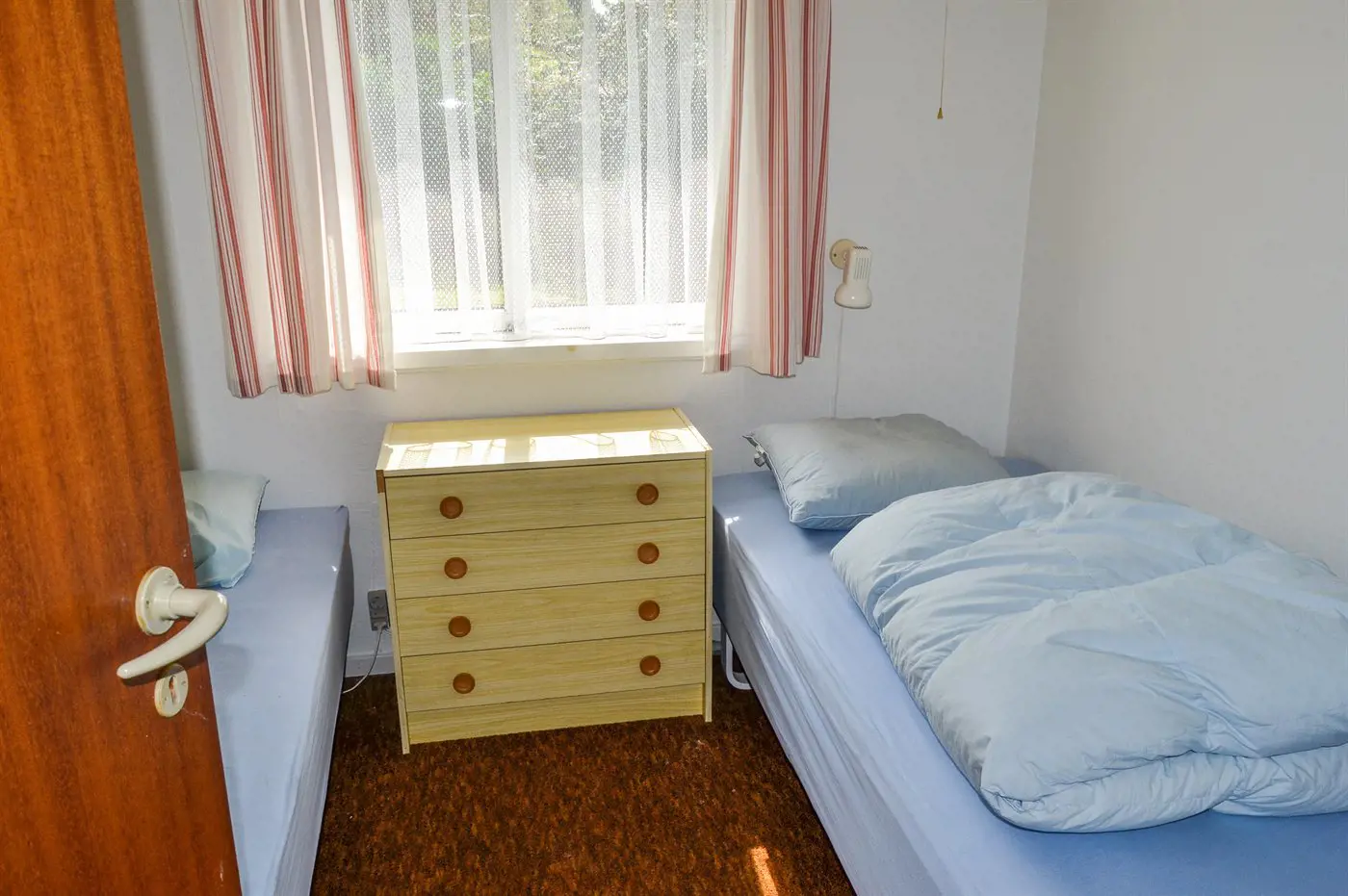Die Schlafplätze verteilen sich auf 3 Schlafräume. 2 Schlafplätze in einem Doppelbett. 3 Schlafplätze in Einzelbetten. 2 Schlafplätze in einem Etagenbett.