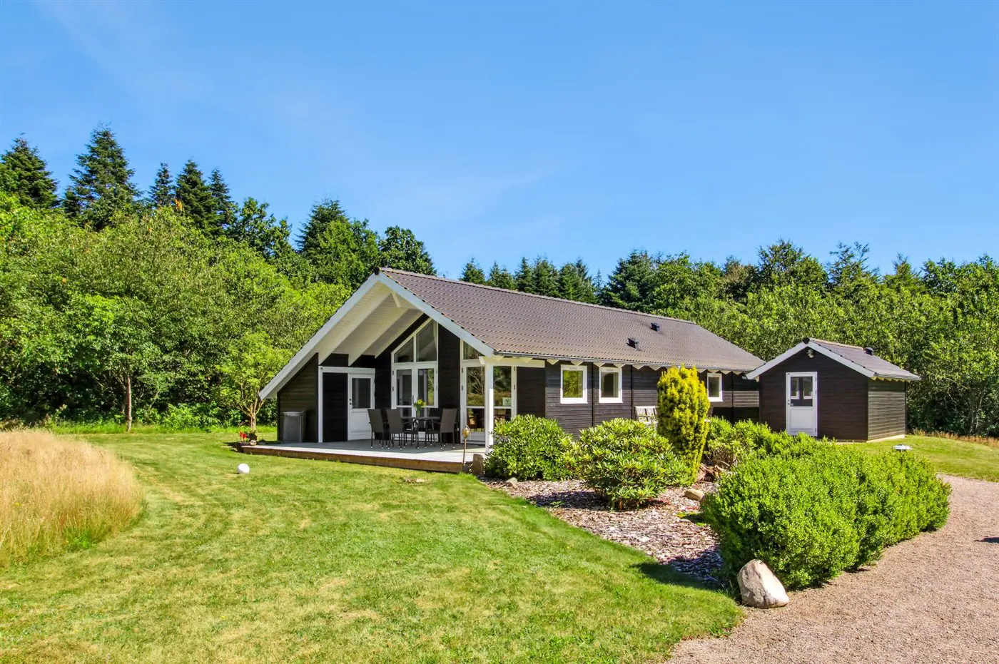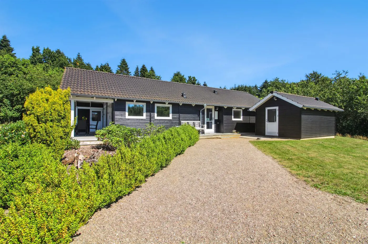 Nicht weit von hier findest du die Einrichtungen der Umgebung sowie Einkaufsmöglichkeiten. Das Haus liegt auf einem schönen Grundstück, und du hast direkten Zugang von der Wohnküche zur teilweise überdachten Terrasse.