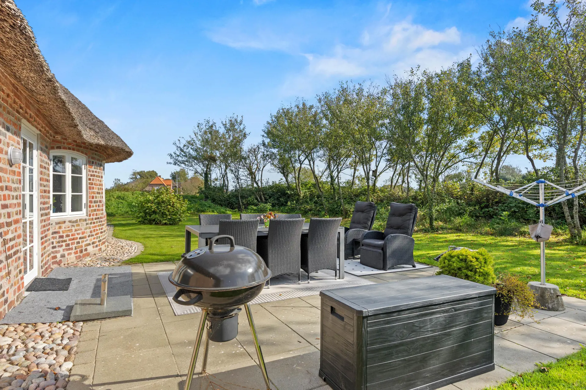 Auch wenn das Ferienhaus in Ballum durch seine historische Bauweise besticht, musst du hier nicht auf moderne Annehmlichkeiten verzichten. Eine gut ausgestattete Küche mit Spülmaschine erleichtert deine täglichen Abläufe, während die Waschmaschine und der Trockner zusätzlichen Komfort bieten. Die installierte Wärmepumpe sorgt zu jeder Jahreszeit für das perfekte Raumklima. Dieses Ferienhaus verbindet auf einzigartige Weise Tradition und Moderne, indem es dir sowohl den Charme eines Reetdachhauses als auch zeitgemäße Technik bietet.