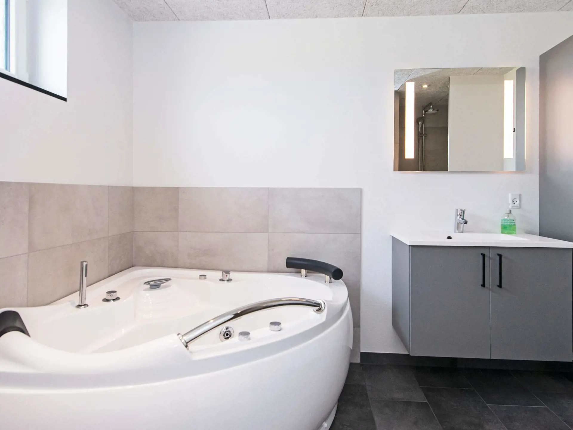 Genießen Sie draußen auf der Terrasse in den guten Gartenmöbeln die schöne, ruhige Umgebung oder ein erfrischendes Bad im Whirlpool oder Außendusche unter freiem Himmel. Es gibt im Garten Shelter sowie Gartentrampolin für die Kinder (Nutzung nur auf eigenes Risiko).