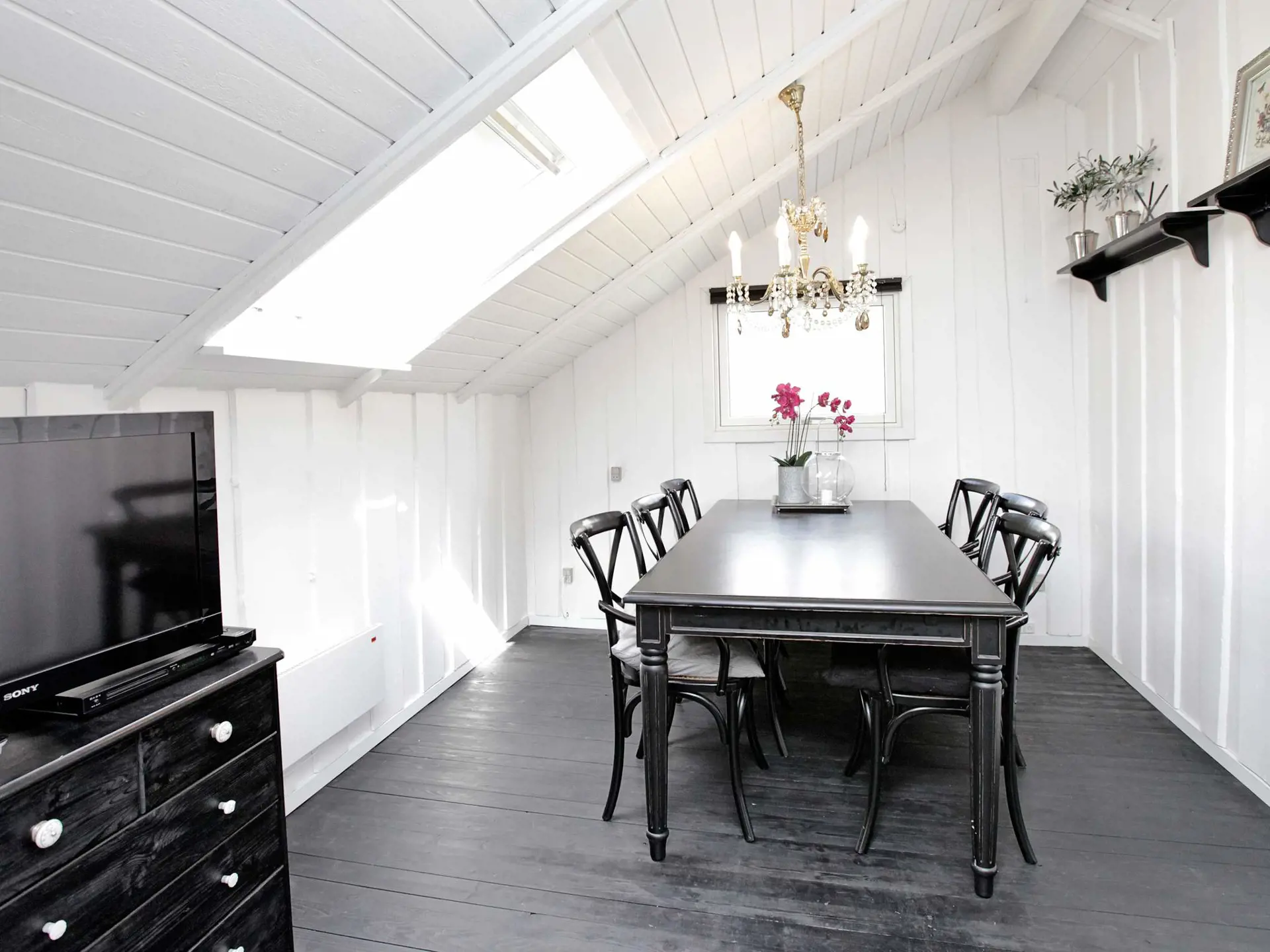 Das Ferienhaus ist hell und wohnlich eingerichtet. Es hat einen offenen Küchen-/Wohnbereich mit Ess- und Sitzecke für das Familienleben sowie Holzofen für kühlere Tage und Zutritt zur Terrasse. Genießen Sie dort die Mahlzeiten des Tages mit Ausblick zum Wasser.