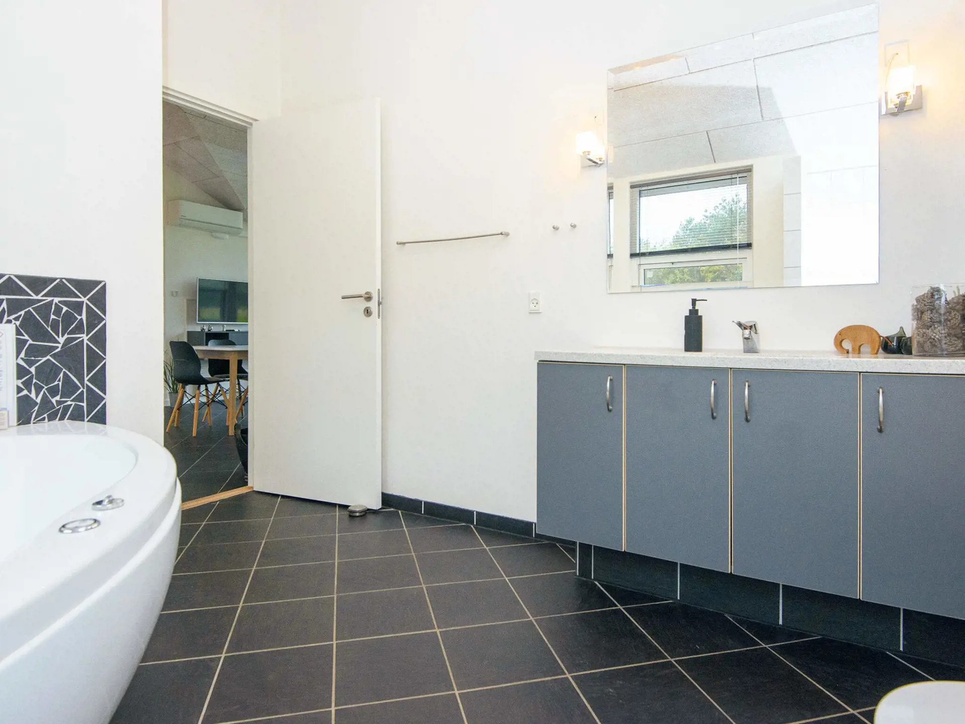 Dieses gut ausgestattete Ferienhaus mit Whirlpool im Badezimmer liegt auf einem großzügigen Naturgrundstück mit herrlichem Blick auf den nahegelegenen Kvie-See. Das Haus ist für einen erholsamen Familienurlaub mit Selbstverpflegung konzipiert und bietet allen Komfort.