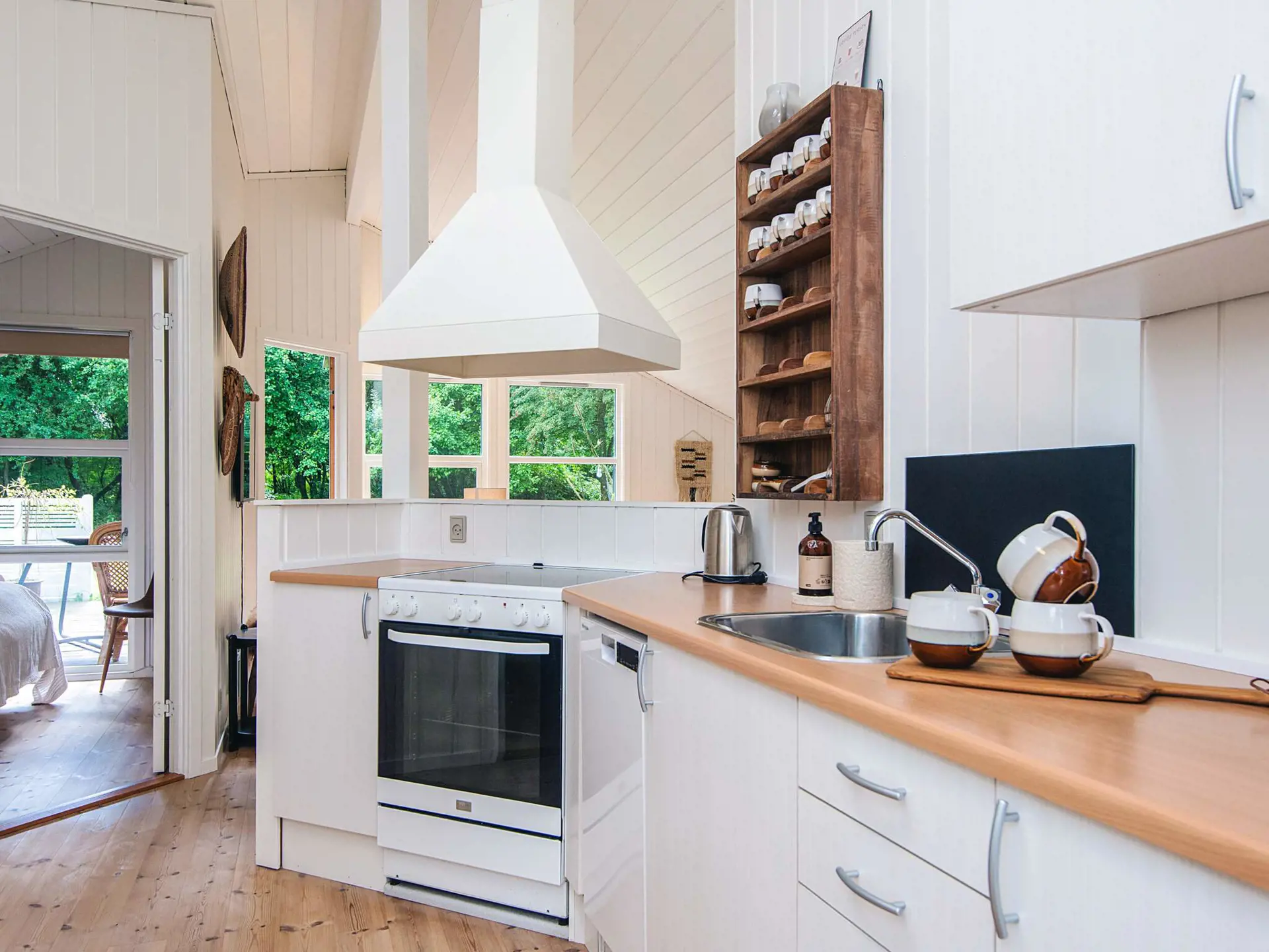 Einrichtung: Schlafplätze: 6 (2 Doppelbetten + Loft mit 2 Matratzen). Küchenzeile mit Grundausstattung. Kostenloses WLAN. Zugang zu VandWærket (begrenzte Öffnungszeiten). Gemeinsames Badezimmer und Küche. Parken am Ferienhaus. Spiel- und Ballplätze in der Umgebung. Strand, Hafen, Geschäfte und Restaurants sind zu Fuß erreichbar. Hinweis: Es wird ein Umweltzuschlag von 15 DKK erhoben. pro Tag in der Hütte, die bei der Ankunft bezahlt wird.