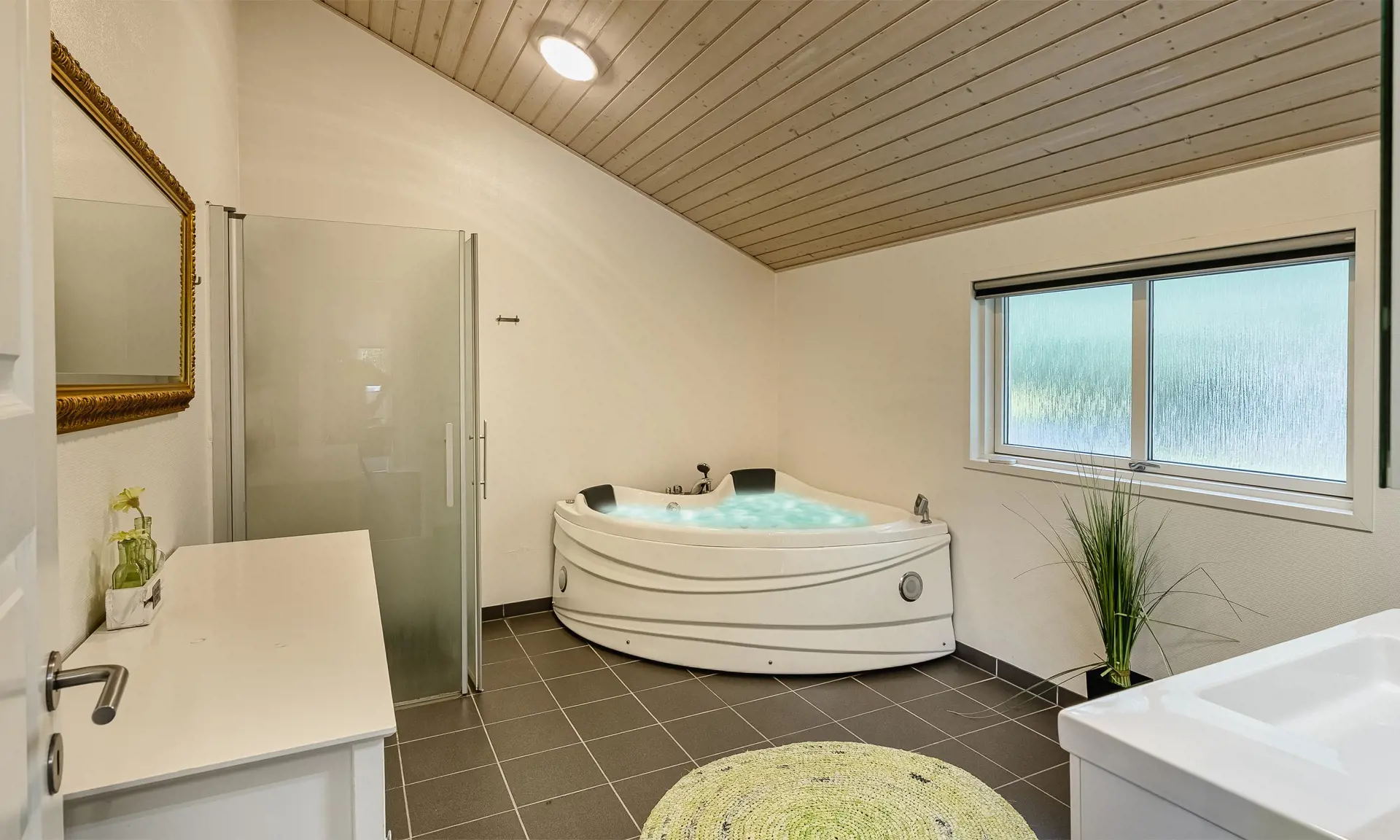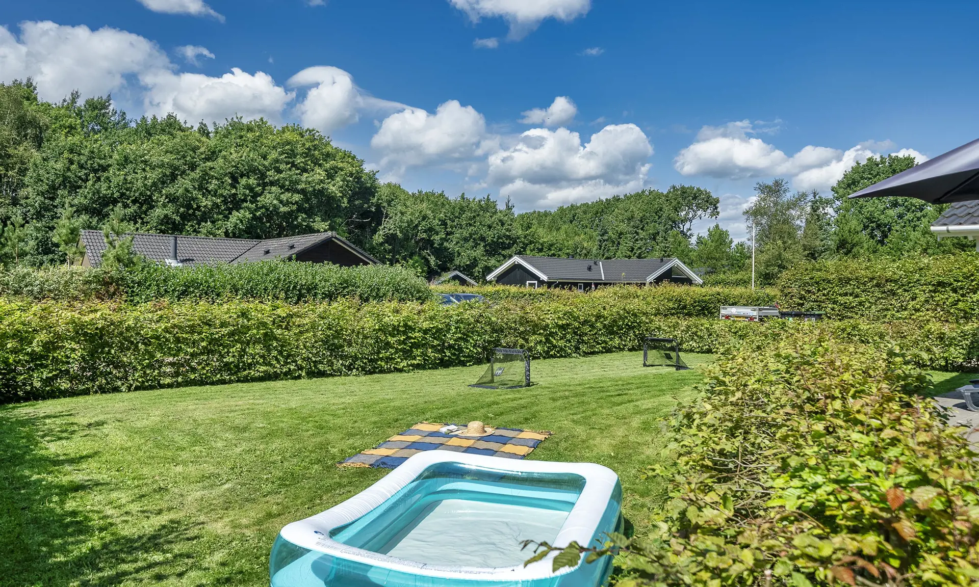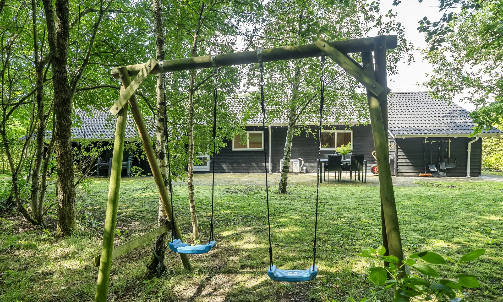 Für etwas Unterhaltung zwischendurch steht das Aktivitätszimmer mit Billard- und Tischtennisplatte bereit – ideal für kleine Turniere oder einen verregneten Tag. Draußen können die Kinder auf den Schaukeln oder im Garten spielen, während die Erwachsenen auf der Terrasse entspannen. Der überdachte Bereich ist perfekt für gemütliche Abende, und der Whirlpool bietet ganzjährig echte Verwöhnmomente.