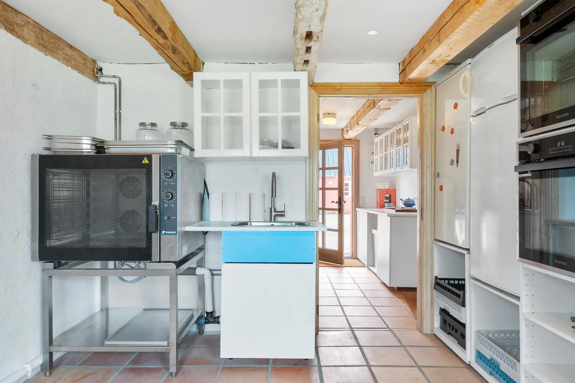 - Teeküche mit großem Kühlbereich, Industrieofen und Geschirrspülern