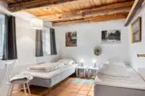 Im 2. Stock befindet sich ein schlafsaalähnlicher Raum, der den heutigen Gästen einen Eindruck davon vermittelt, wie die jungen Frauen während ihrer Aufenthalte im 19. Jahrhundert Seite an Seite lebten. Bitte beachten Sie, dass die Treppe dorthin für manche Gäste steil sein kann.
