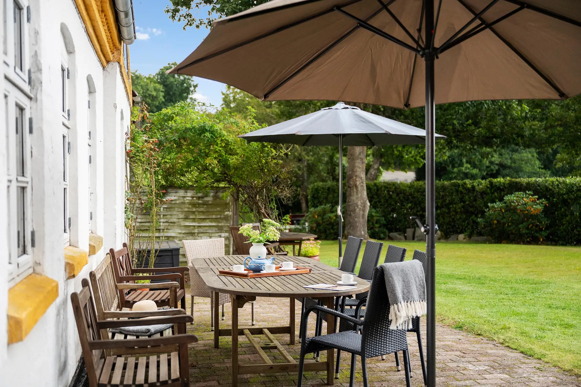Die Nebengebäude wurden sorgfältig renoviert und bieten modernen Komfort. Der ehemalige Kuhstall dient heute als Bankettsaal oder Konferenzraum mit Platz für bis zu 48 Personen. Hier können Sie die ganze Gesellschaft zum Abendessen, einer Party oder einem Kurs zusammenbringen, während das Bauernhaus eine gemütliche Atmosphäre für Kaffee, Musik und Gespräche bietet.