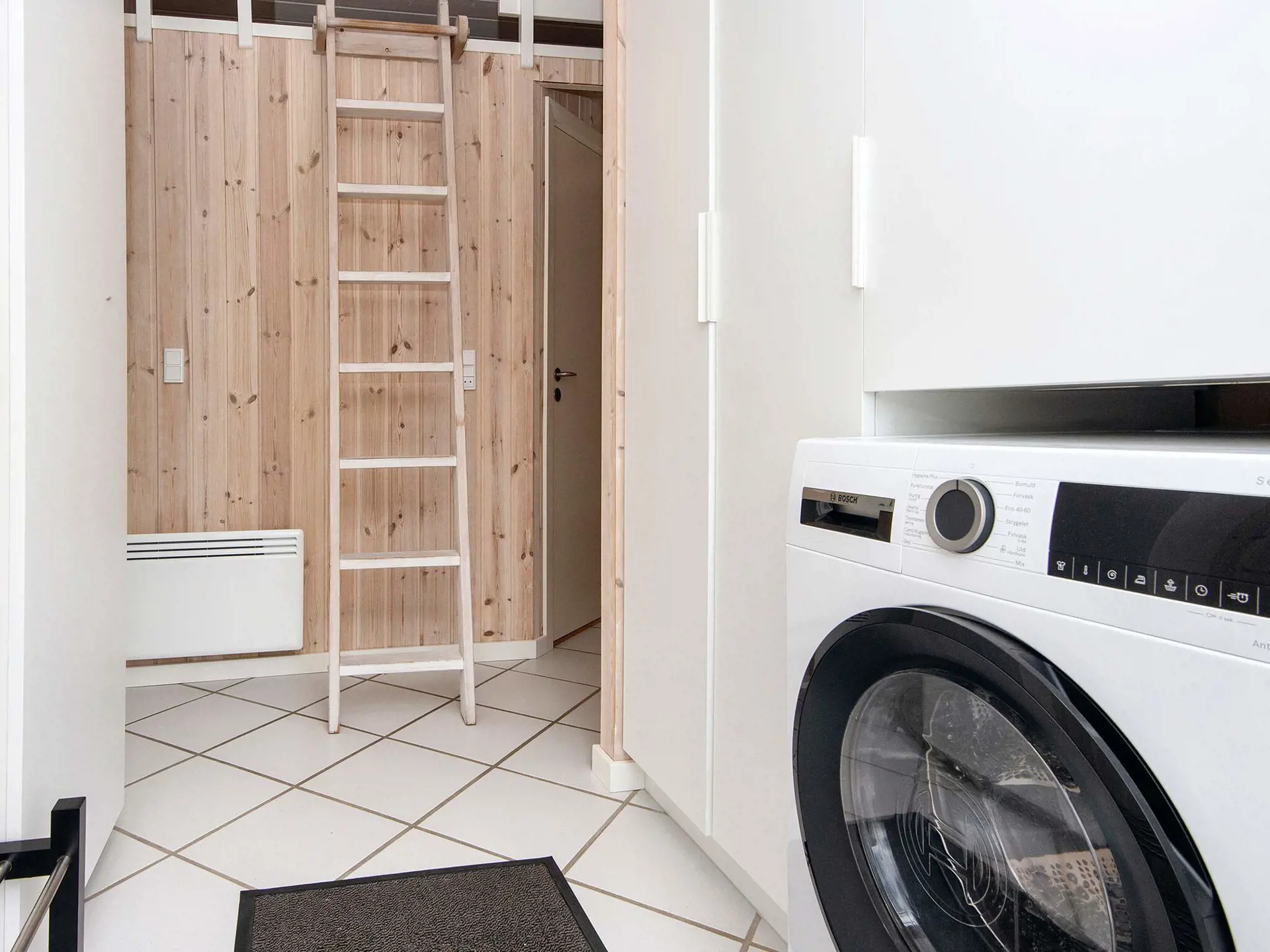 In 2. Reihe am Bjert Strand, einem kinderfreundlichen Badestrand, liegt dieses traditionelle Ferienhaus. Schräge Winkel und Nischen geben ihm seine besondere Atmosphäre. Für Entspannung sorgen Badewanne und Sauna. Die energiesparende Wärmepumpe kann auch als Klimaanlage genutzt werden. Für Kinder wurde ein Sandkasten auf dem Grundstück aufgestellt.