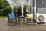 Das gut eingerichtete Ferienhaus für sechs Personen begrüßt Sie mit einer gut ausgestatteten Küche, die unter anderem einen Geschirrspüler beinhaltet. Die Küche ist offen mit dem Wohn- und Essbereich kombiniert, in dem Sie auf einen Kaminofen, eine energiesparende Wärmepumpe und einen Ausgang auf die große und teilweise überdachte Holzterrasse treffen. Ein Badezimmer mit einer Waschmaschine und einer Fußbodenheizung ist vorhanden. Gleiches gilt für drei Schlafräume, von denen zwei mit jeweils einem Doppelbett eingerichtet sind. Im dritten Schlafraum erwarten Sie ein Einzelbett und ein darüber angebrachtes Hochbett.