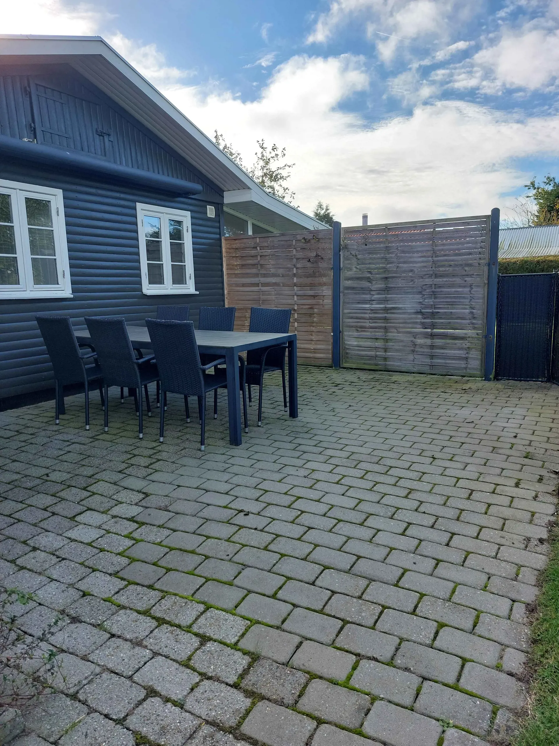 Draußen gibt es sowohl eine offene als auch eine überdachte Terrasse. Gartenmöbel, Grill und zwei Liegestühle stehen zur Verfügung. Parkplätze befinden sich auf dem Grundstück.