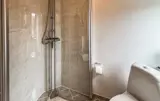 Freuen Sie sich im Inneren auf ein angenehmes Raumgefühl mit breiten Fensterfronten, die viel Licht hereinlassen. Machen Sie es sich auf dem komfortablen Ecksofa bequem und lassen Sie den Blick durch die großen Scheiben in den Garten schweifen. Servieren Sie Ihre gemeinsamen Mahlzeiten am langen Esstisch und besprechen Sie dort Ihre Ausflugspläne. In der offenen Küche können Sie Ihre Urlaubsgerichte ganz unkompliziert zubereiten. Sorgen Sie zusätzlich für Unterhaltung mit einer Partie Tischfußball oder fordern Sie sich gegenseitig beim Dart heraus.