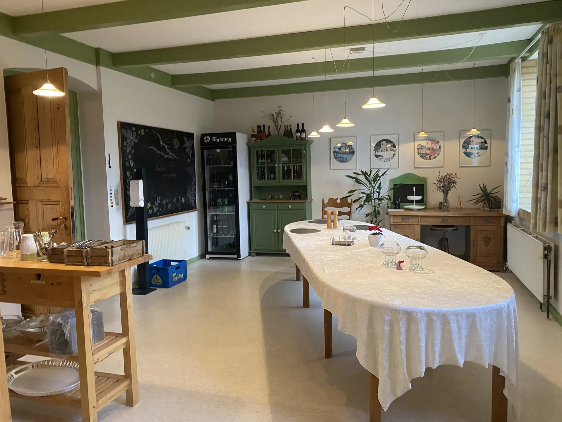 Das Anwesen bietet dir zwei schöne, zusammenhängende Wohnräume mit Platz für bis zu 40 Personen. Diese Räumlichkeiten eignen sich bestens zum gemütlichen Beisammensein sowie für festliche Anlässe wie Geburtstage und Jubiläen. Kurse, Tagungen, Firmenmeetings und dergleichen können hier ebenfalls sehr gut abgehalten werden.