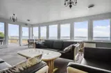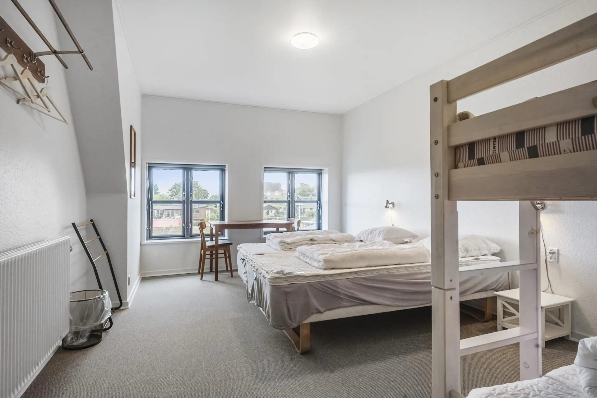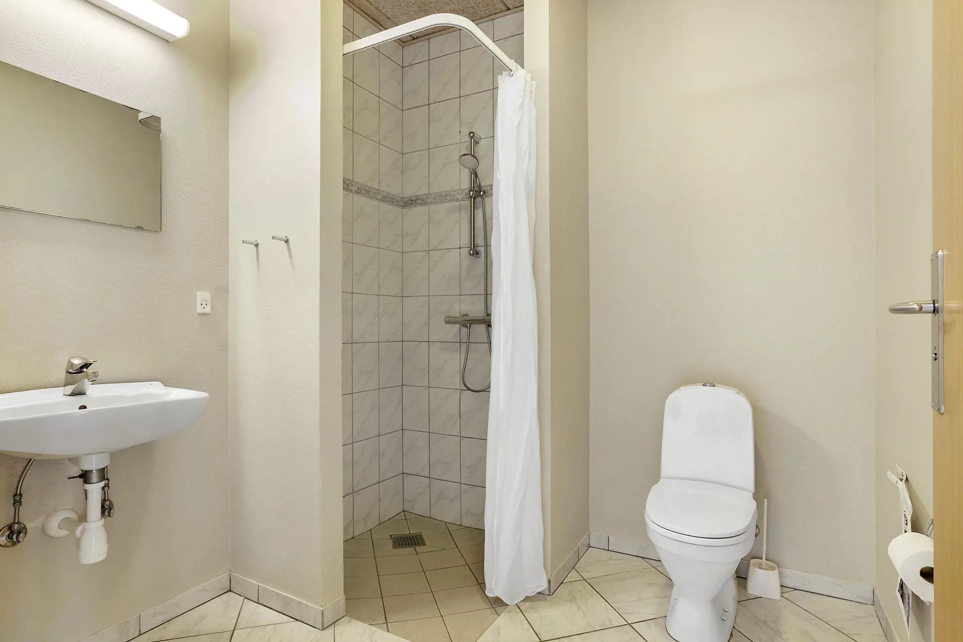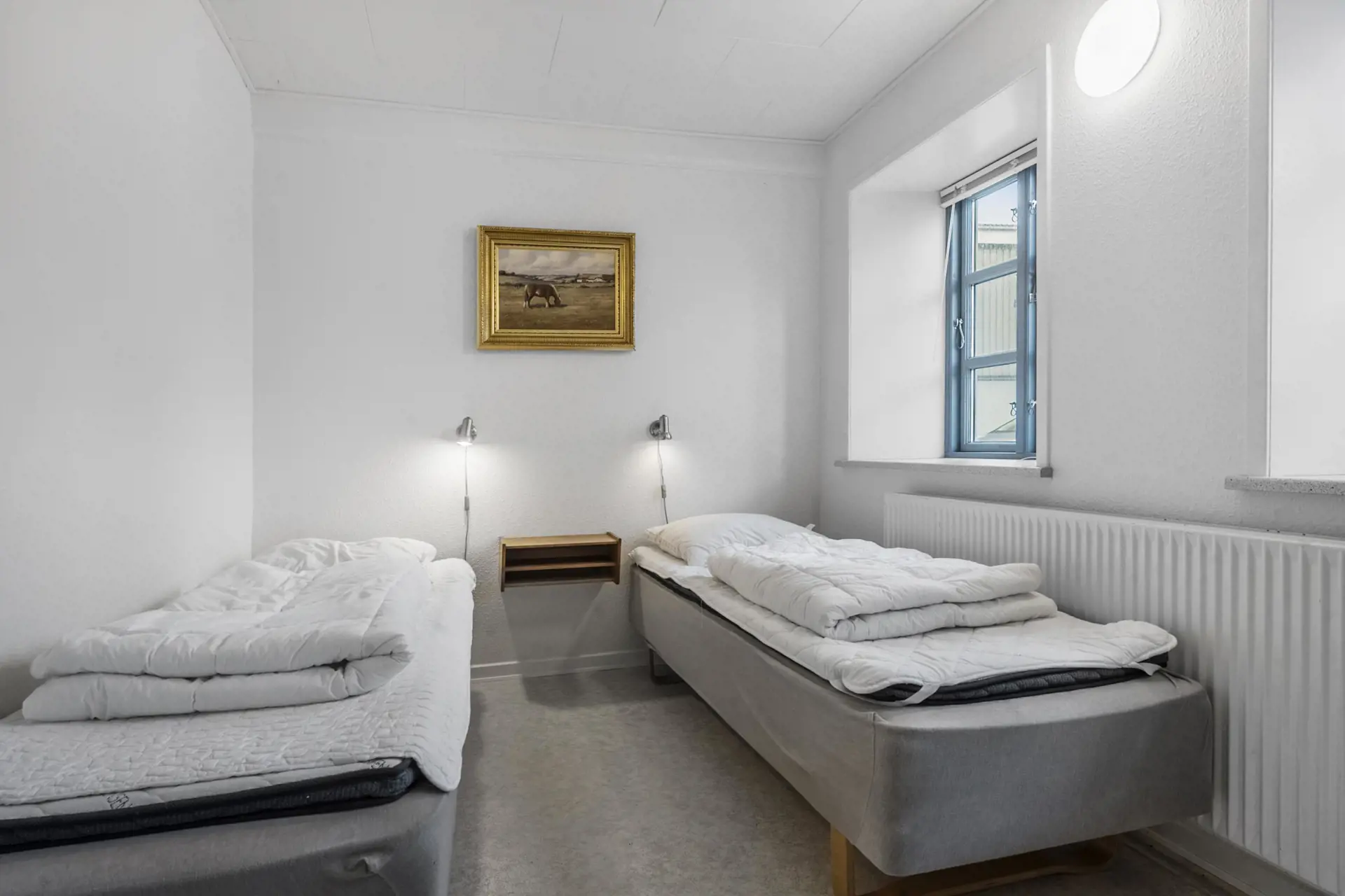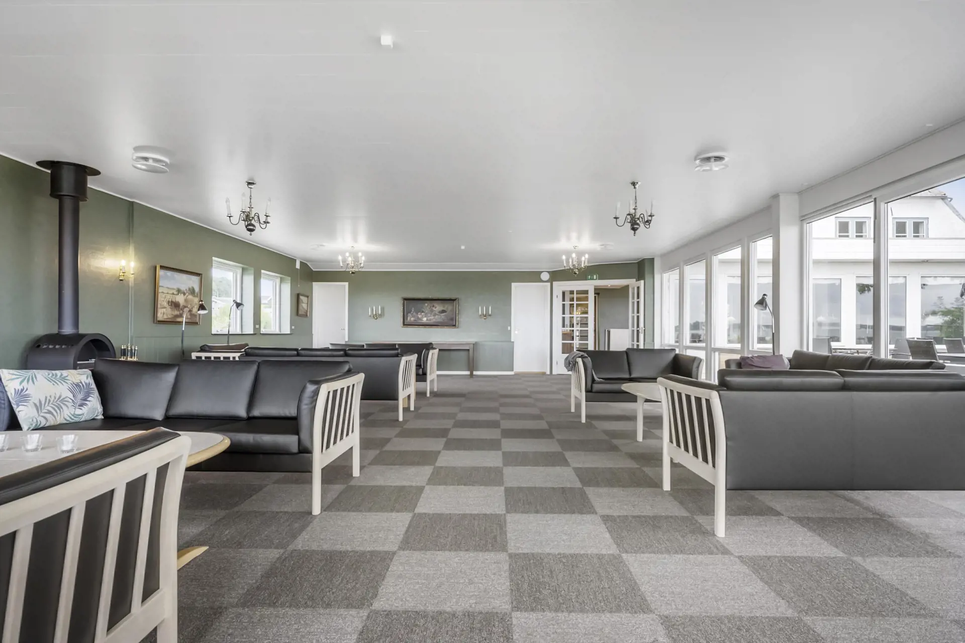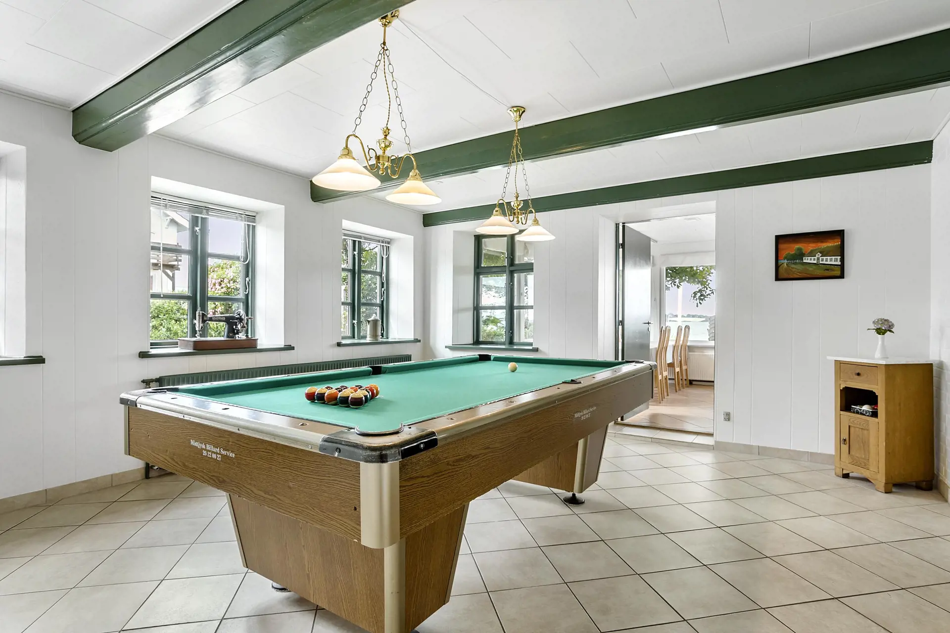 Das zweistöckige Haus verfügt im Erdgeschoss über einen einladenden Poolbereich mit einem 40 m2 großen Swimmingpool mit Gegenstromanlage, großem Whirlpool, Dusche und Sauna. Darüber hinaus gibt es ein gemütliches und großes Wohnzimmer mit Sofaecken, TV, Brennofen und großen Panoramafenstern zum Wasser hinaus. Von hier aus kann man das separate Esszimmer betreten, das bis zu 32 Personen Platz bietet und ebenfalls eine Fensterfront zur Förde hinaus hat, sodass man die einzigartige Aussicht beim Essen genießen kann. Die funktionelle Industrieküche bietet viel Platz zum Kochen, und im Aktivitätsraum kann man Billard, Airhockey, Dart und Tischfußball spielen. Es gibt einen Kühlraum von ca. 5 m2 in Haus. Im Erdgeschoss befinden sich außerdem 5 Schlafräume, 2 davon sind mit Doppelbetten ausgestattet. 3 Badezimmer und 3 Gäste-WCs.