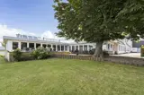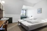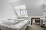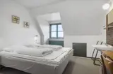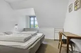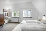 Der 1. Stock ist eingerichtet mit den übrigen 10 Schlafräumen mit Doppelbetten sowie mit 2 Badezimmern. Im Kellergeschoss befindet sich ein Konferenzraum für 45 Personen. Vom Wohnzimmer aus gibt es direkten Zugang zur 150 m2 großen Aussichtsterrasse, von der aus man den Ausblick auf die Förde und den Garten genießen kann. Von der Küche aus gibt es Zugang zu einer überdachten Terrasse. Man kann sich auch auf dem 5500 m2 großen Grundstück aufhalten, das sich bis zur Förde mit dem kinderfreundlichen Strand erstreckt.