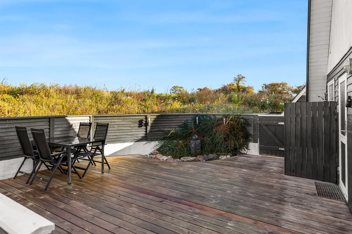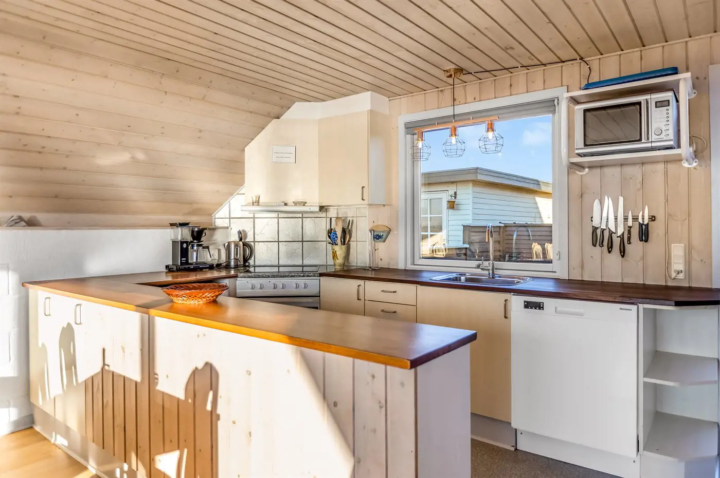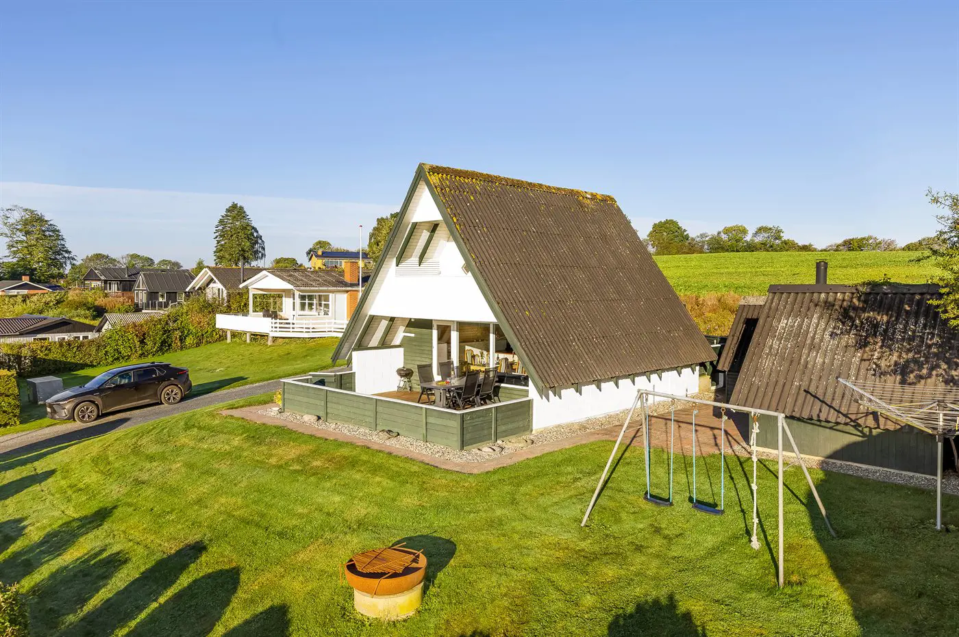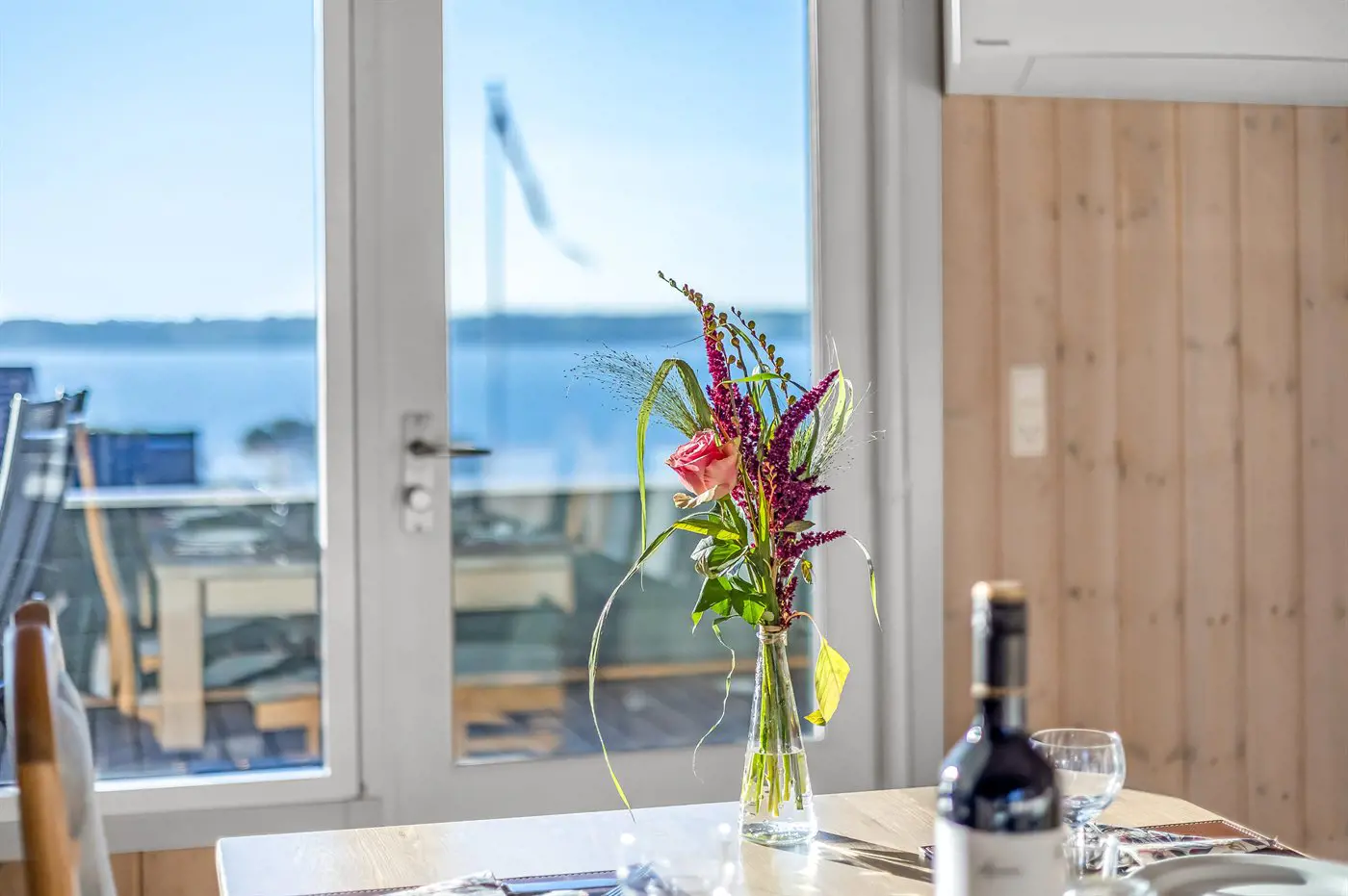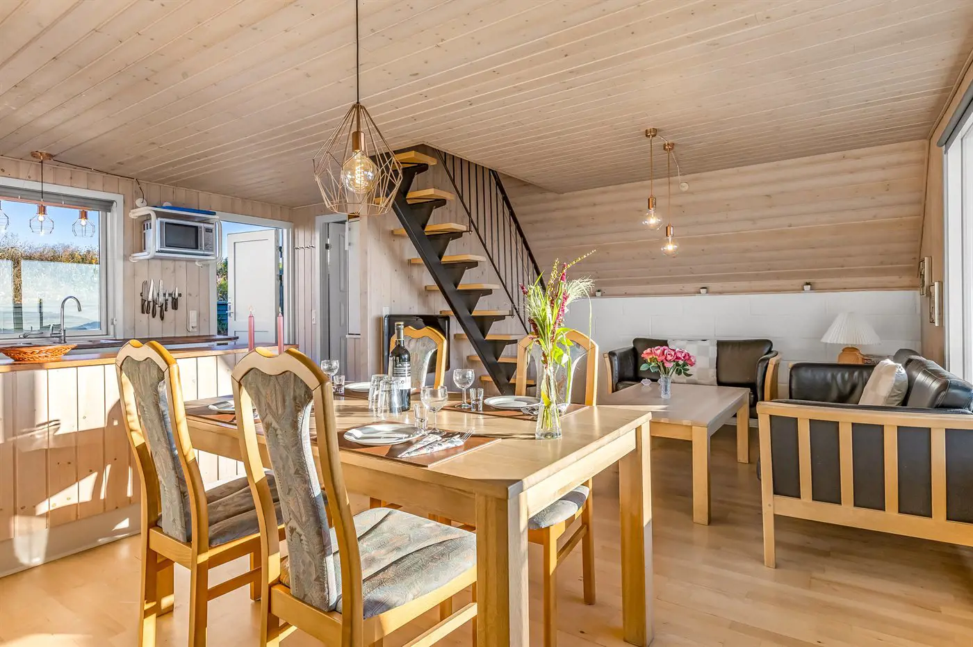 Dieses gemütliche Ferienhaus älteren Jahrgangs, mit Meerblick sowohl vom Haus als auch vom Grundstück, liegt im Feriengebiet Skarrev – ganz in der Nähe von einem kinderfreundlichen Badestrand.