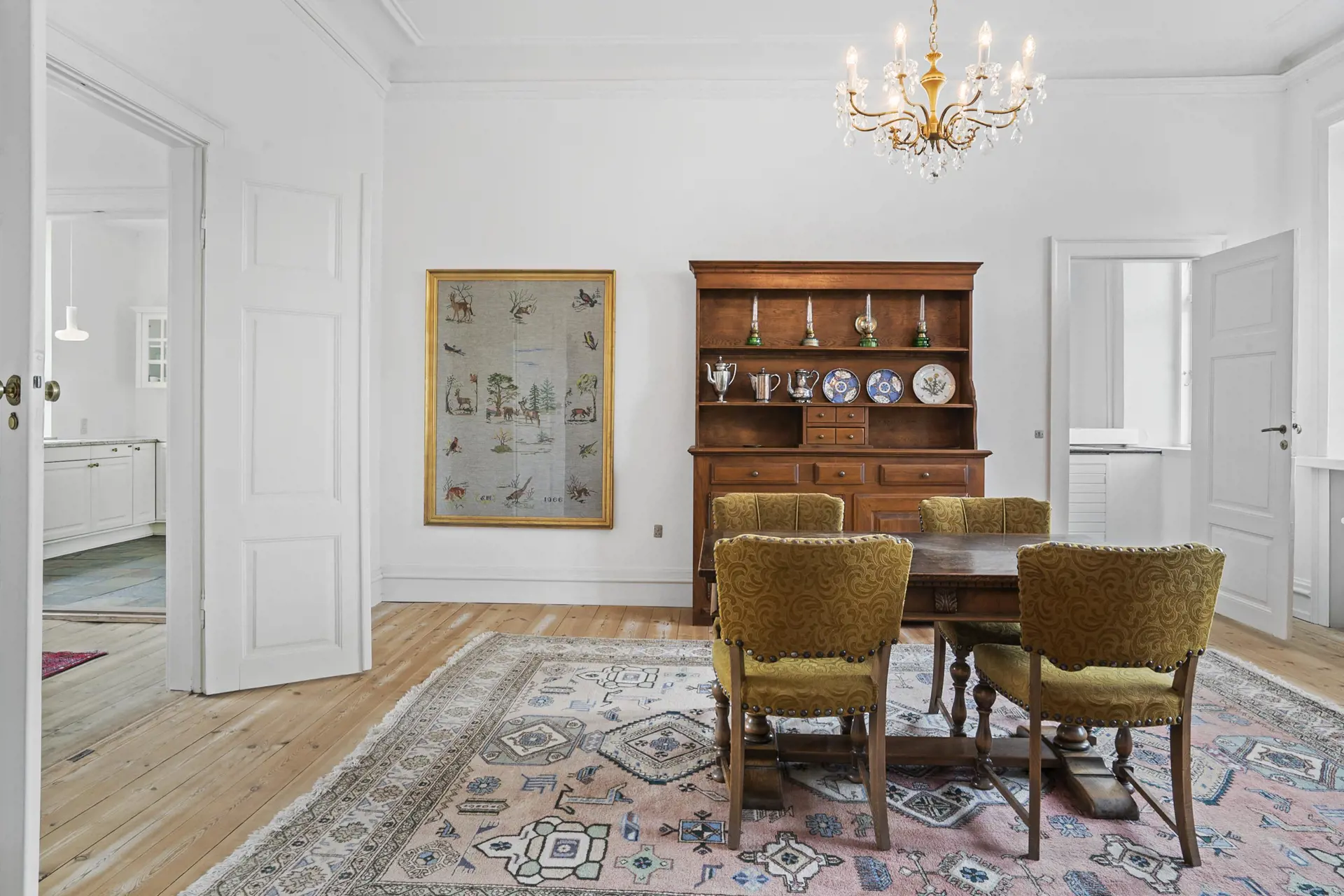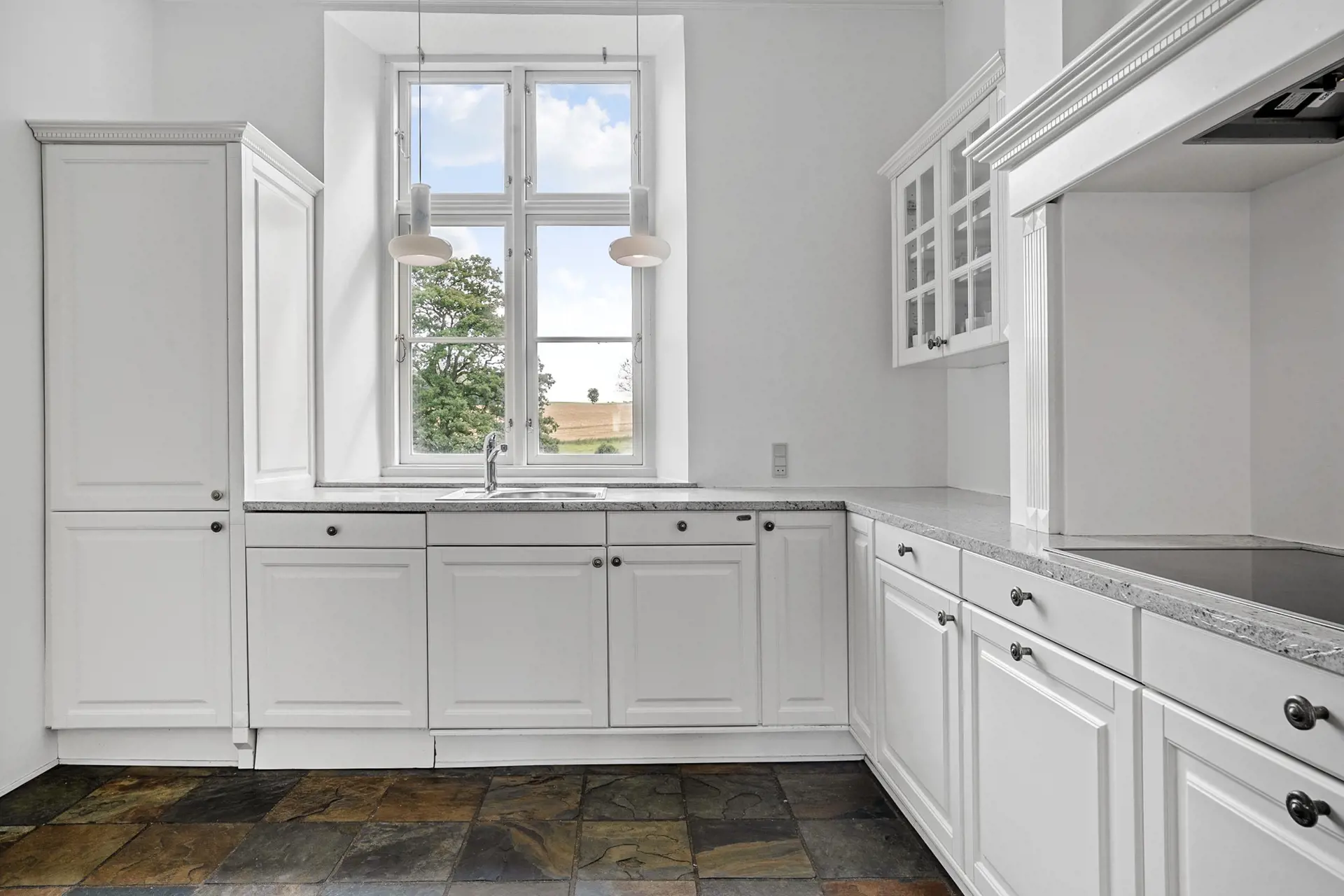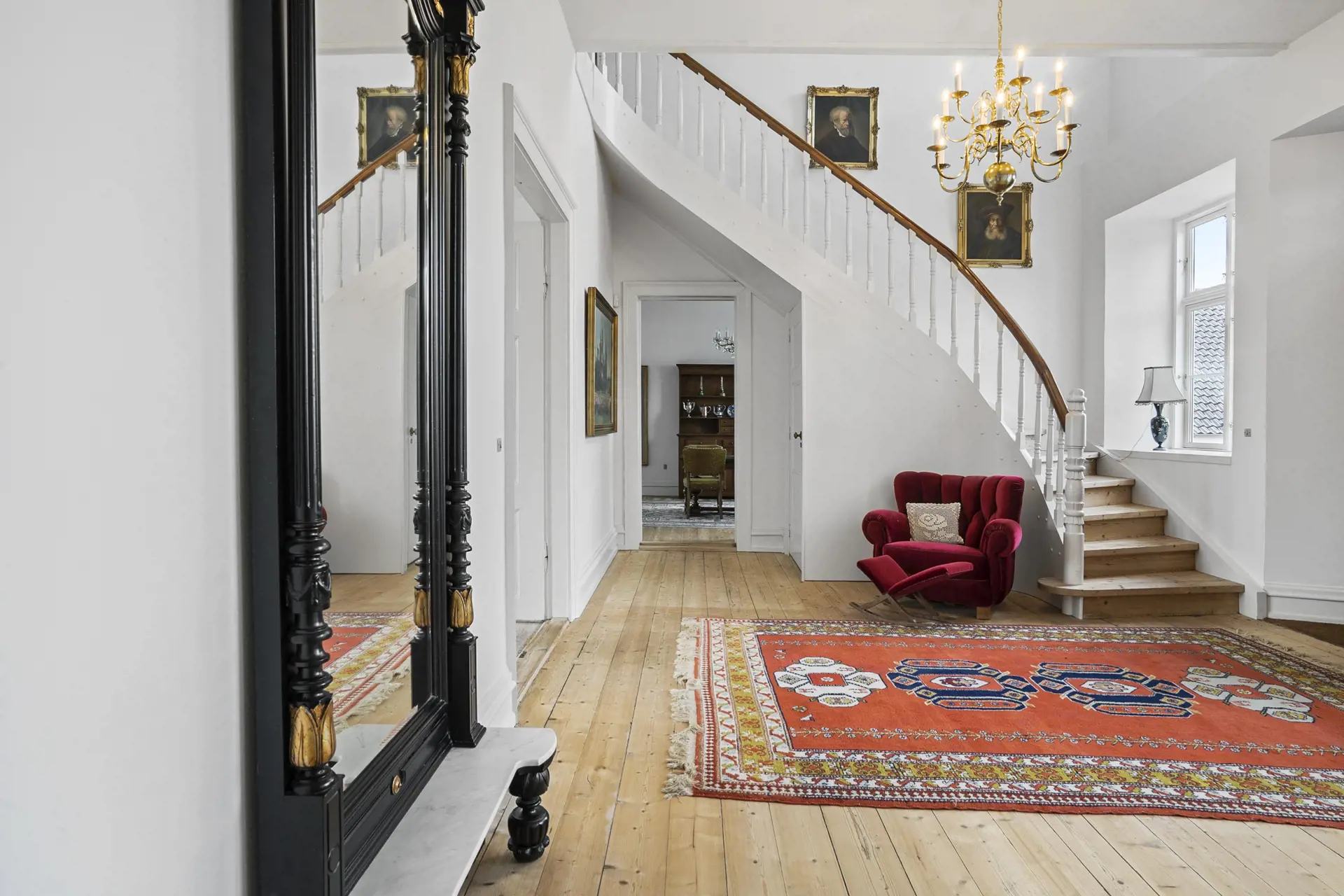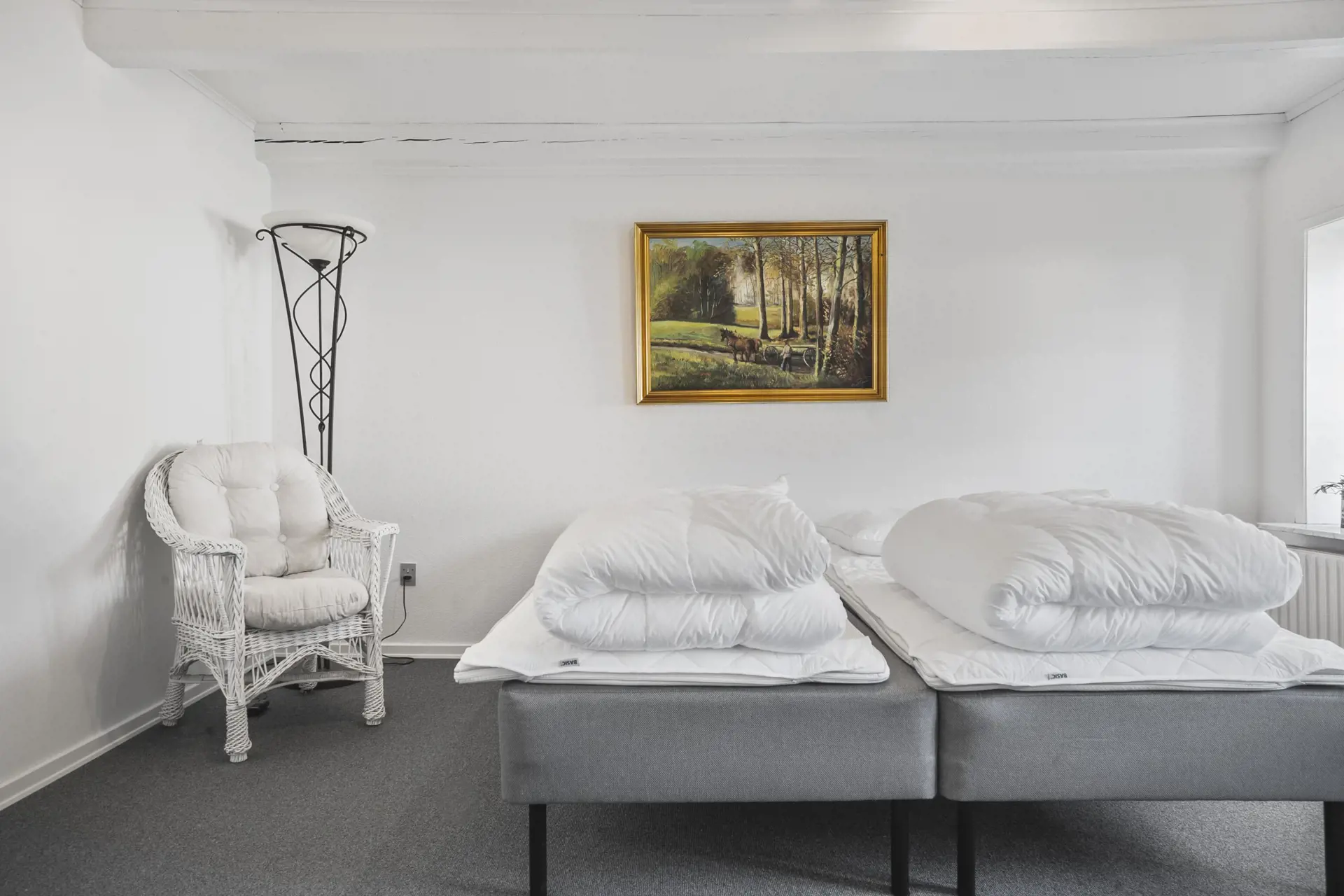 Der weiß gekalkte Hvolgaard Hovedgaard ruht hübsch platziert auf einem kleinen Hügel im Ølholm Ådal. Der heutige Drei-Flügel-Hof ist von reizvoller dänischer Landschaft umgeben. Die schönen Details der Gebäude und die helle Fassade verleihen dem Gutshof ein herrschaftliches, klassisches und elegantes Erscheinungsbild.