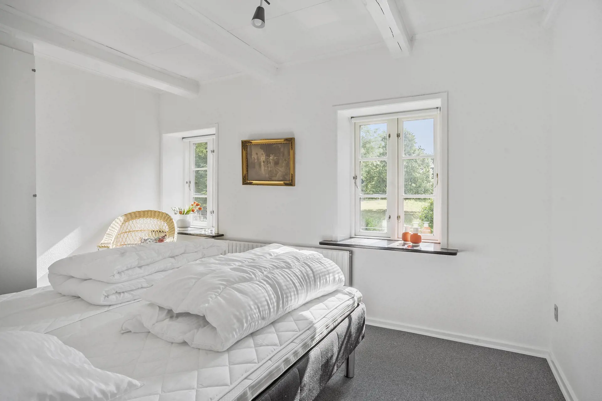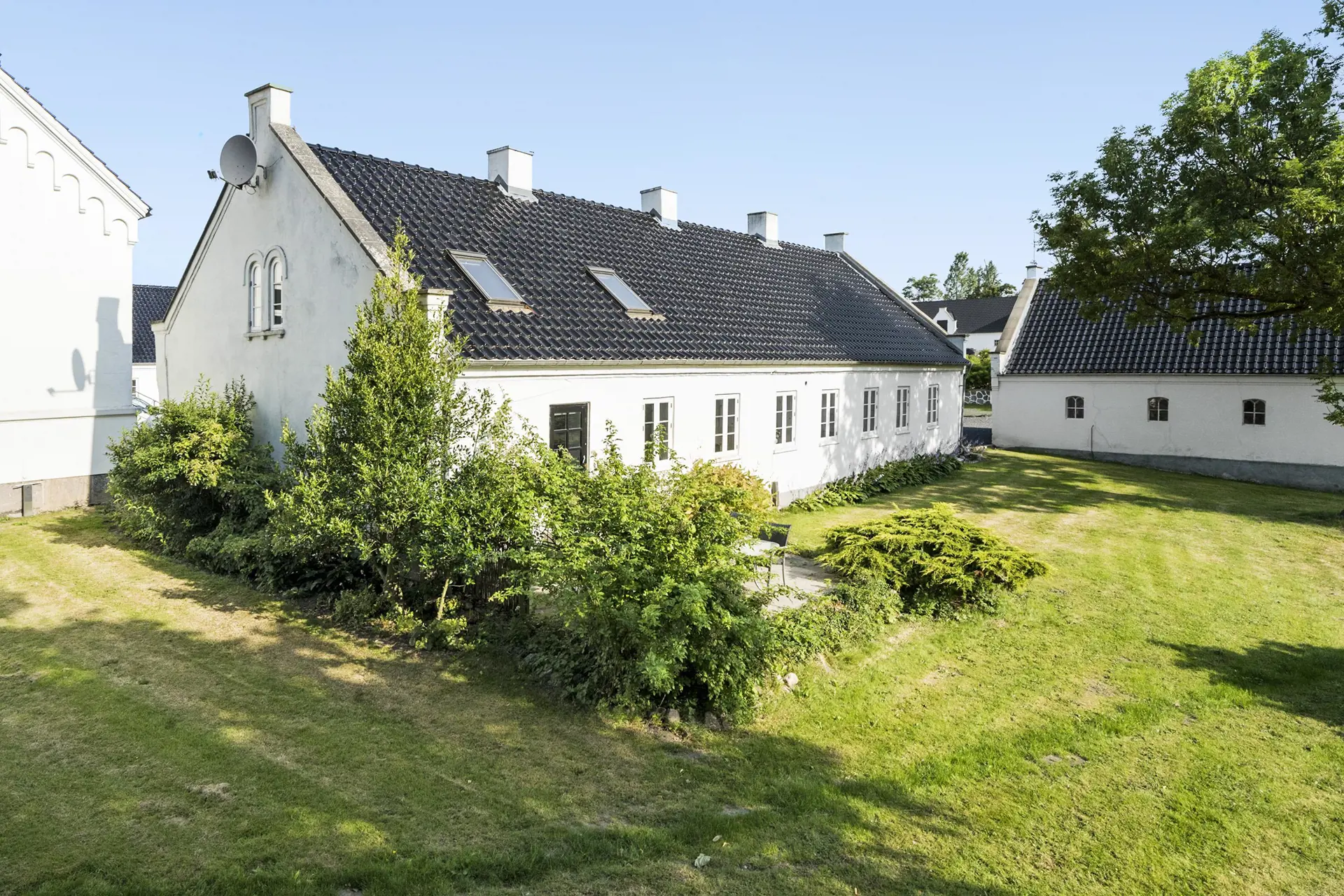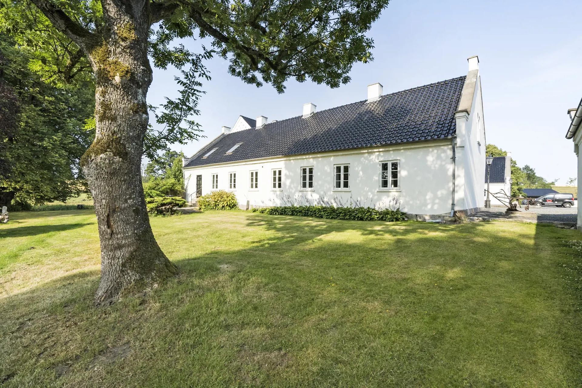 Mit viel Charme, Eleganz und Seele heißt Sie dieses Anwesen willkommen - völlig unabhängig vom Anlass Ihres Aufenthalts. Das Haupthaus beinhaltet 7 Schlafzimmer mit je einem Doppelbett. Hinzu gesellen sich 2 Aufbettungsmöglichkeiten. Vier Badezimmer und ein Gäste-WC stehen zu Ihrer Verfügung. Die Küche verfügt über einen Kühlschrank, einen Geschirrspüler, einen Herd und eine Mikrowelle. Während Ihres Aufenthalts genießen Sie verschiedenen Aktivitätsmöglichkeiten für Gruppen und Ihre gesamte Familie. Dies gilt auch in der attraktiven grünen Gartenanlage, die sich hervorragend in die grüne Umgebung des Hvolgaards einfügt.