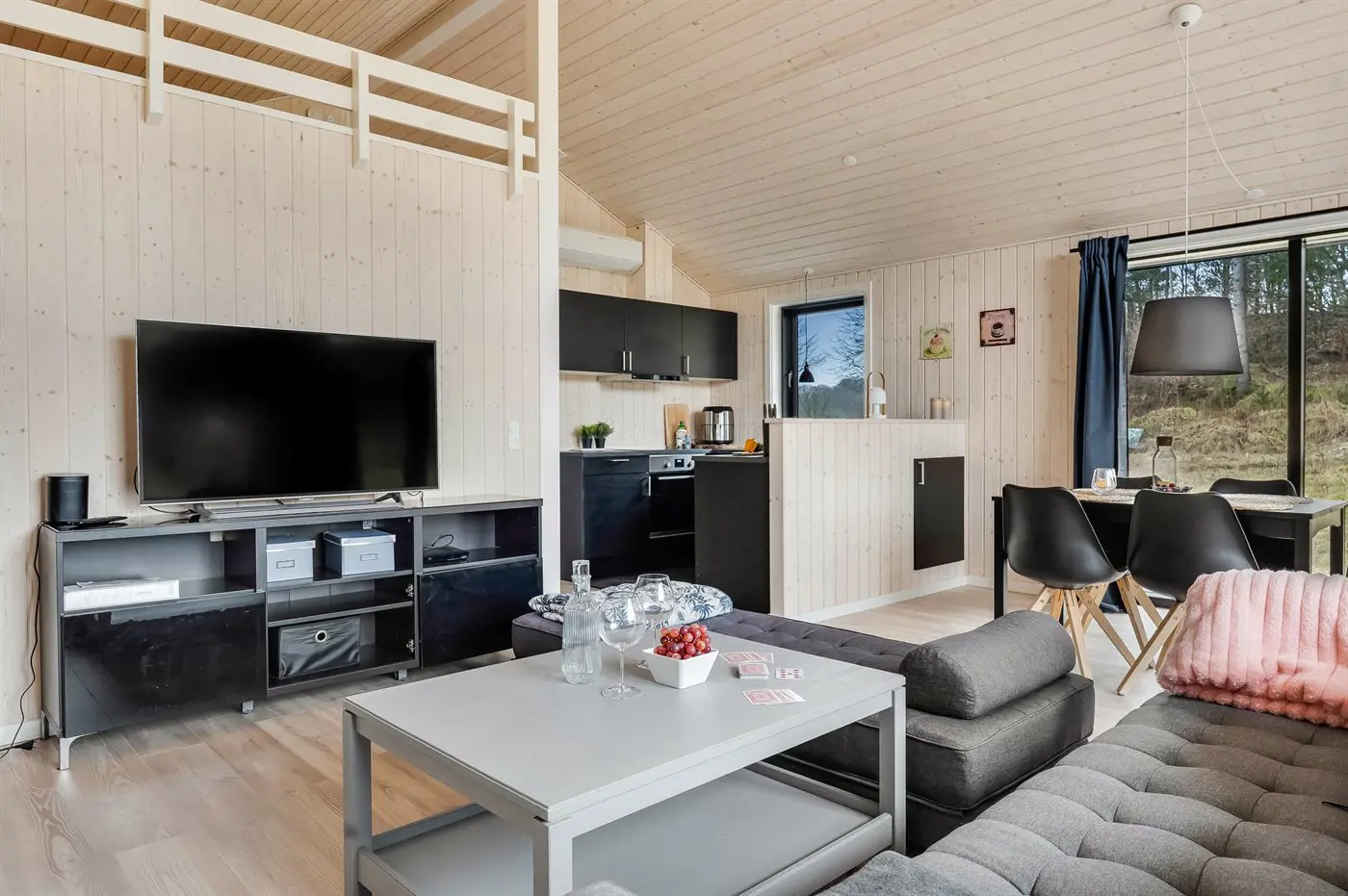 Im Inneren präsentiert sich das Ferienhaus hell und modern mit einem sehr guten Grundriss – genau wie man es von einem Neubau erwartet. Das geräumige Wohnzimmer mit offener Küche bildet den Mittelpunkt des Hauses, in dem die Familie gemütliche Stunden verbringen kann, egal wie das Wetter ist. Mit drei Schlafzimmern eignet sich das Haus ideal für eine Familie mit 2-3 Kindern oder ein Paar, das seinen Urlaub in naturschöner Umgebung verbringen möchte.