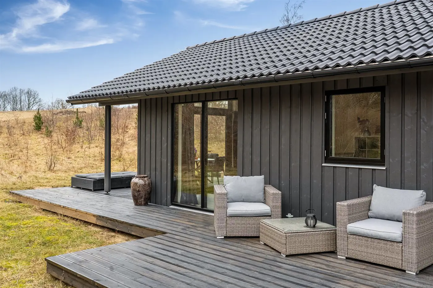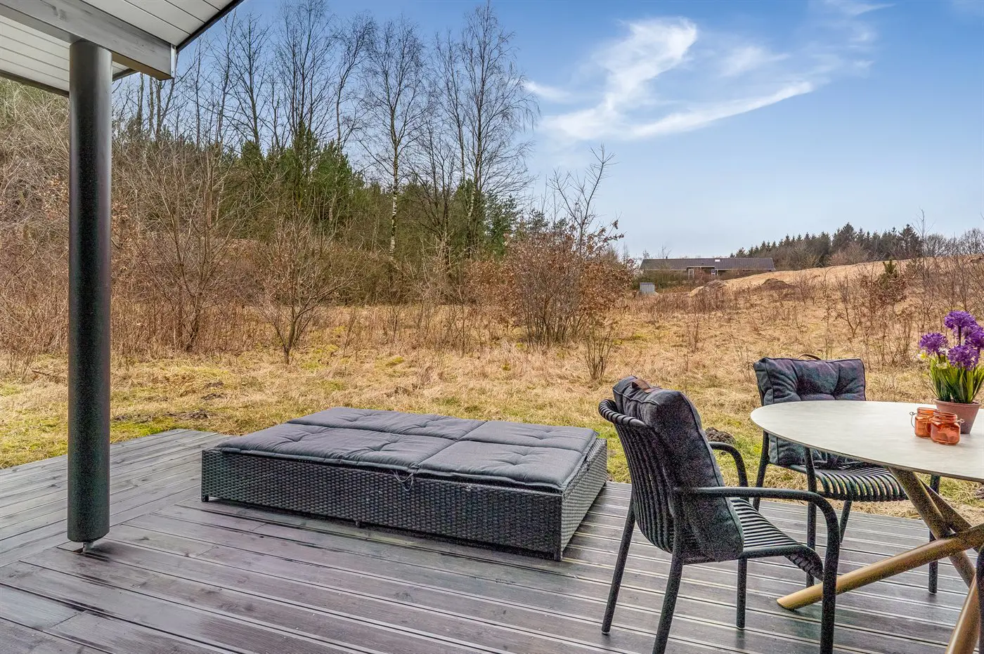 Rund um das Haus gibt es mehrere herrliche Terrassenbereiche, auf denen du die Ruhe in vollen Zügen genießen kannst. Hier findest du auch fast immer eine vor dem Wind geschützte Ecke. Ein Teil der Terrasse ist überdacht, sodass sich die angenehmen Sommerabende verlängern lassen.