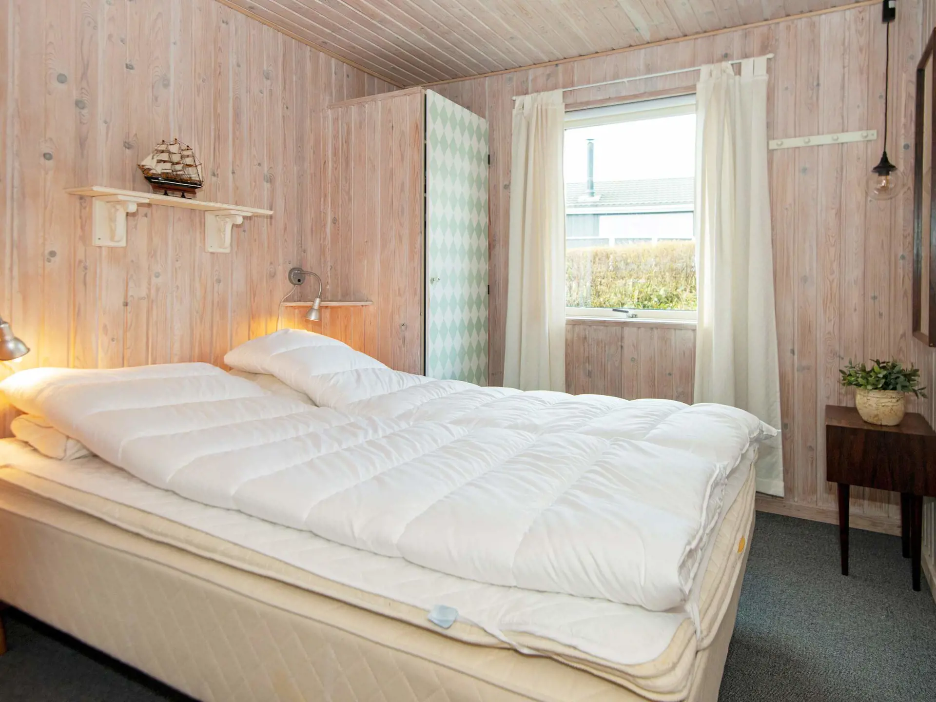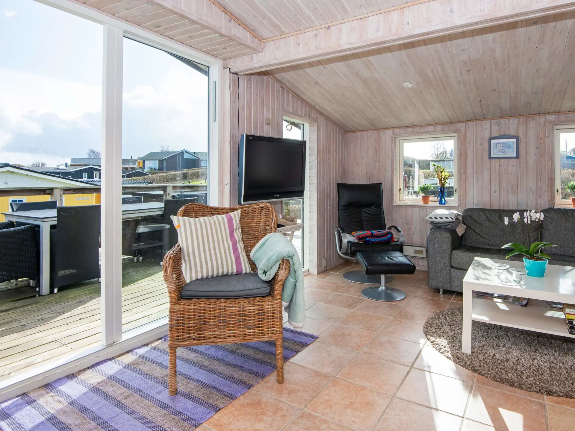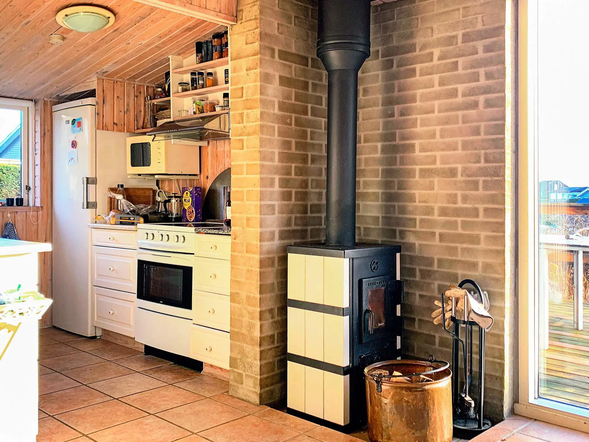 Der Zugang zur Terrasse erfolgt vom Wohnbereich, in den die Küchenzeile offen integriert wurde. Das Innere präsentiert sich hell und in gutem Zustand. Im Wohnbereich steht für kühlere Abende ein gemütlicher Holzofen bereit. TV mit Chromecast und WLAN zum Streamen Ihrer TV-Anbieter. Im Haus gibt es drei Schlafzimmer mit jeweils zwei Schlafplätzen.