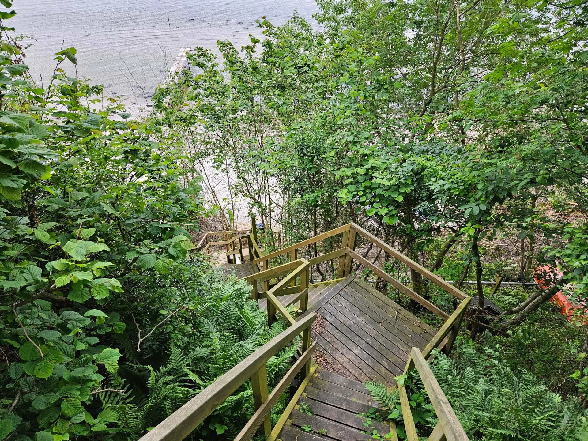 Im Außenbereich gibt es eine große Terrassenfläche, teilweise überdacht, auf der man sich quasi den ganzen Tag über aufhalten und entspannen kann. Direkt vor dem Zugang vom Wohnzimmer aus liegt ein überdachter Teil, links und rechts davon offene Flächen für Sonnenanbeter. Für Kinder gibt es eine Rasenfläche für Spiel und Spaß an der frischen Luft. Zudem findet man in der Umgebung mehrere Spielplätze, einen davon unmittelbar am Strand. Keine Vermietung an Jugendgruppen erwünscht!