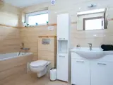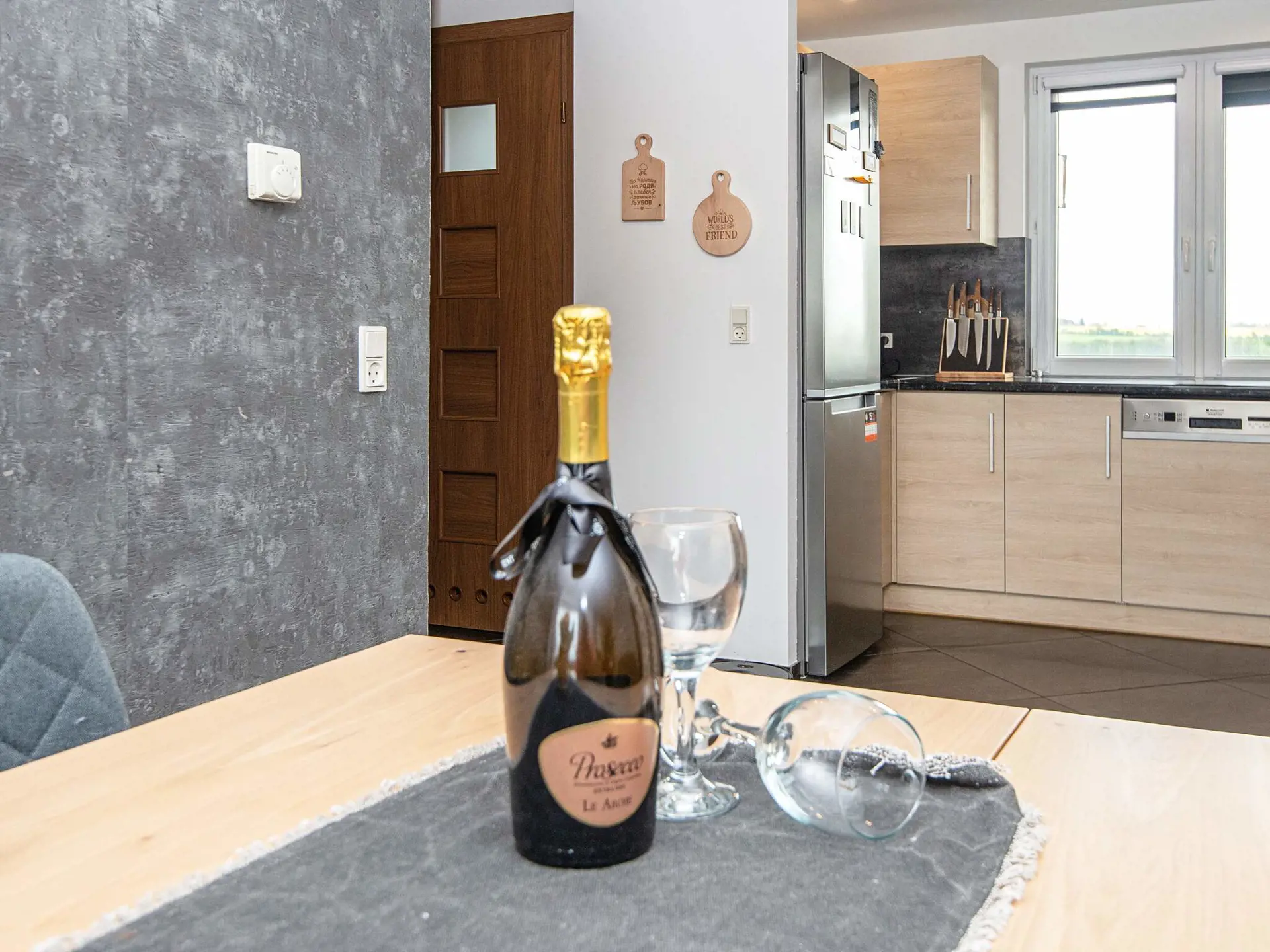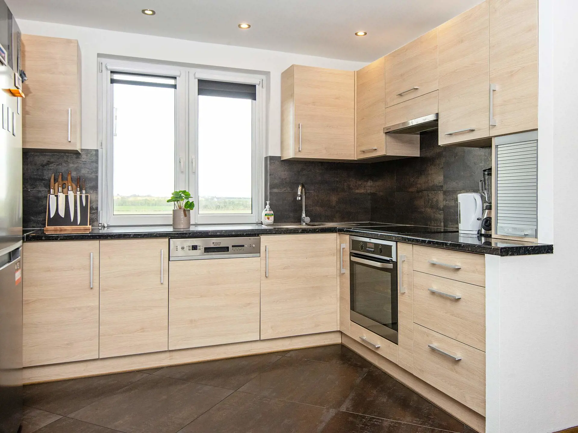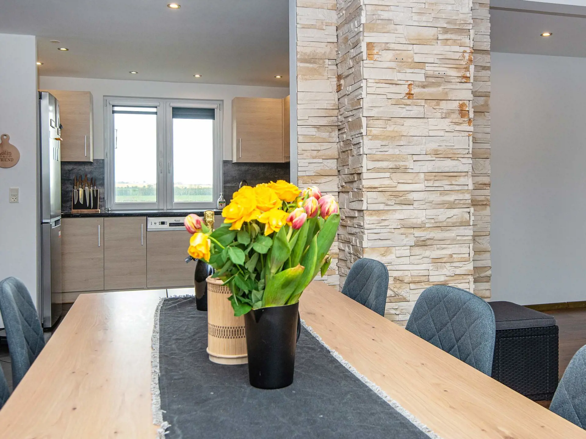 Im Ferienhaus gibt es drei reguläre Schlafzimmer mit jeweils einem Doppelbett sowie einen großen, offenen Küchen-/Wohnbereich für das Familienleben. Von der Wohnküche aus hat man direkten Zugang zum Terrassenbereich und weiter zum Grundstück des Hauses. Zu beachten ist dabei, dass es sowohl am Eingang zum Ferienhaus als auch zum Garten hin einige Treppenstufen gibt.