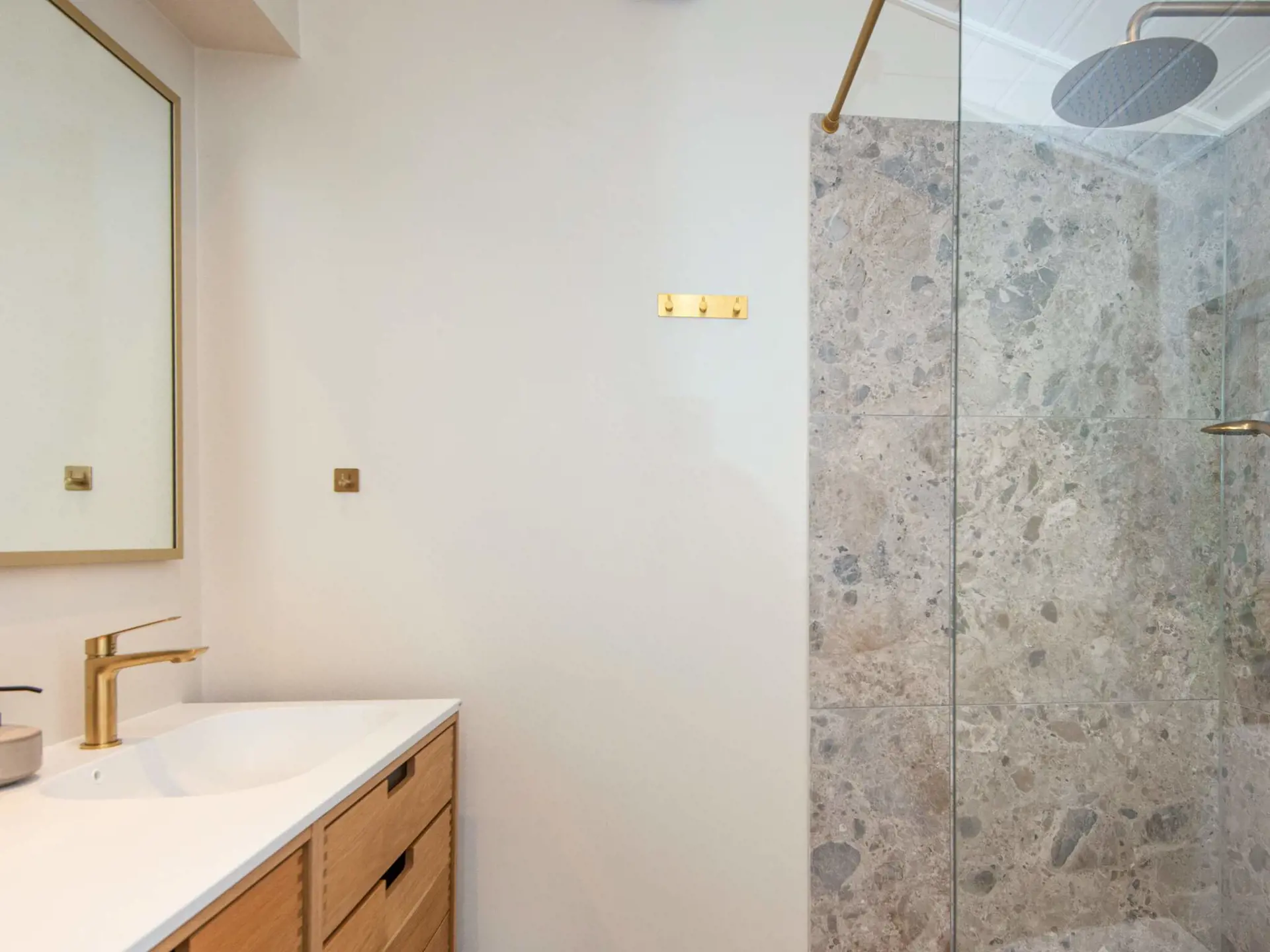 Das Haus wurde fast vollständig renoviert und bietet modernen Komfort in gemütlicher, einladender Atmosphäre. Für die Saison 2023 wurden sowohl die Küche als auch die Böden modernisiert, um ein frisches und angenehmes Ambiente zu schaffen. Die Raumaufteilung eignet sich ideal für Familien oder kleine Gruppen: Zwei Schlafzimmer an gegenüberliegenden Enden des Hauses sorgen für Privatsphäre. Zusätzlich gibt es auf dem Grundstück einen separaten Anbau mit einem Einzelbett – eine praktische Option für einen zusätzlichen Gast.