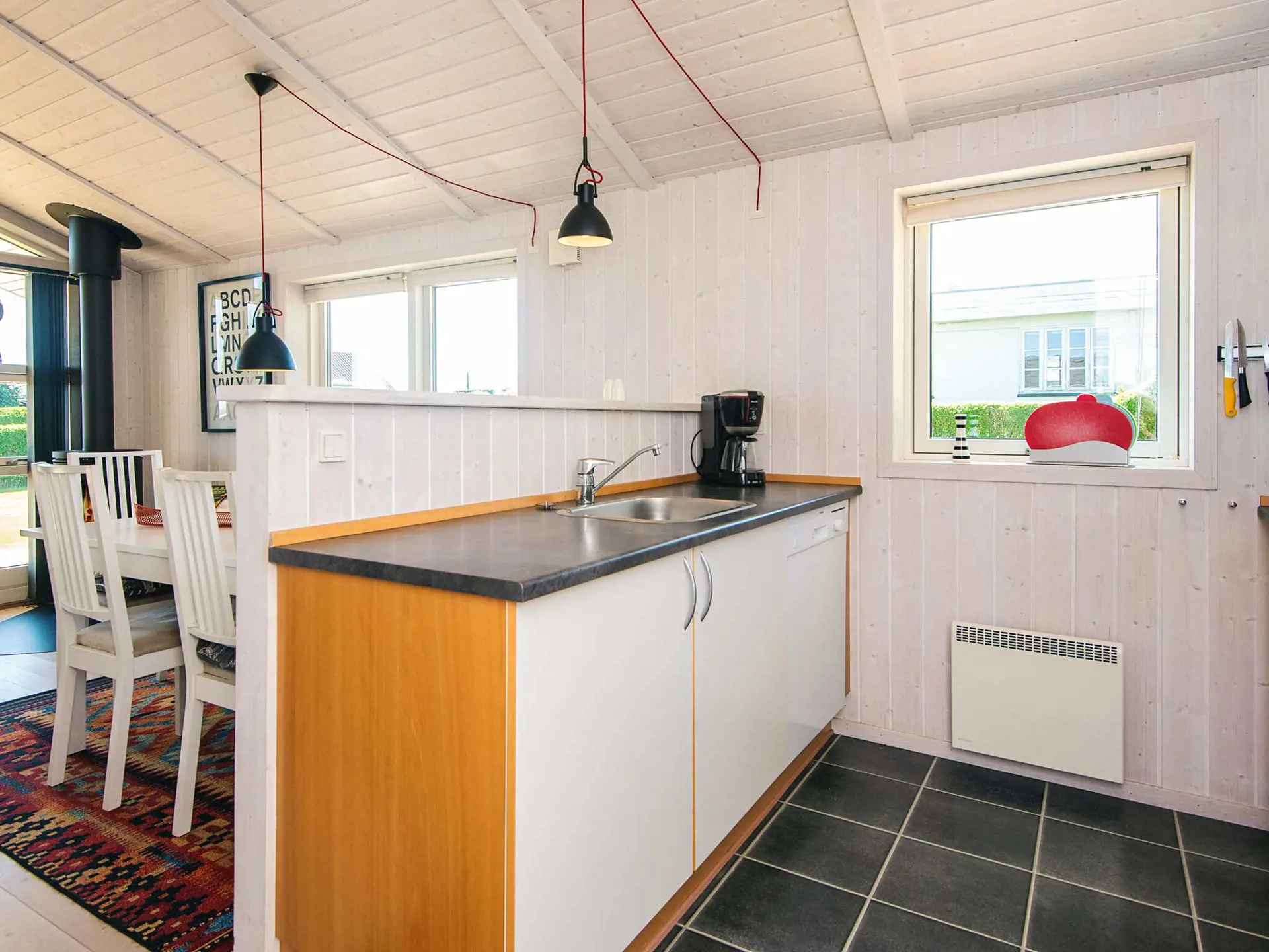 Das Herzstück des Ferienhauses ist die großzügige Wohnküche, die zu gemütlichen Momenten mit Brettspielen am großen Esstisch oder gemütlichem Fernseher auf dem Sofa einlädt. Der Holzofen sorgt für eine gemütliche Atmosphäre, während die Wärmepumpe für sparsames Heizen sorgt.