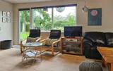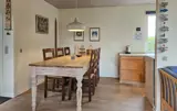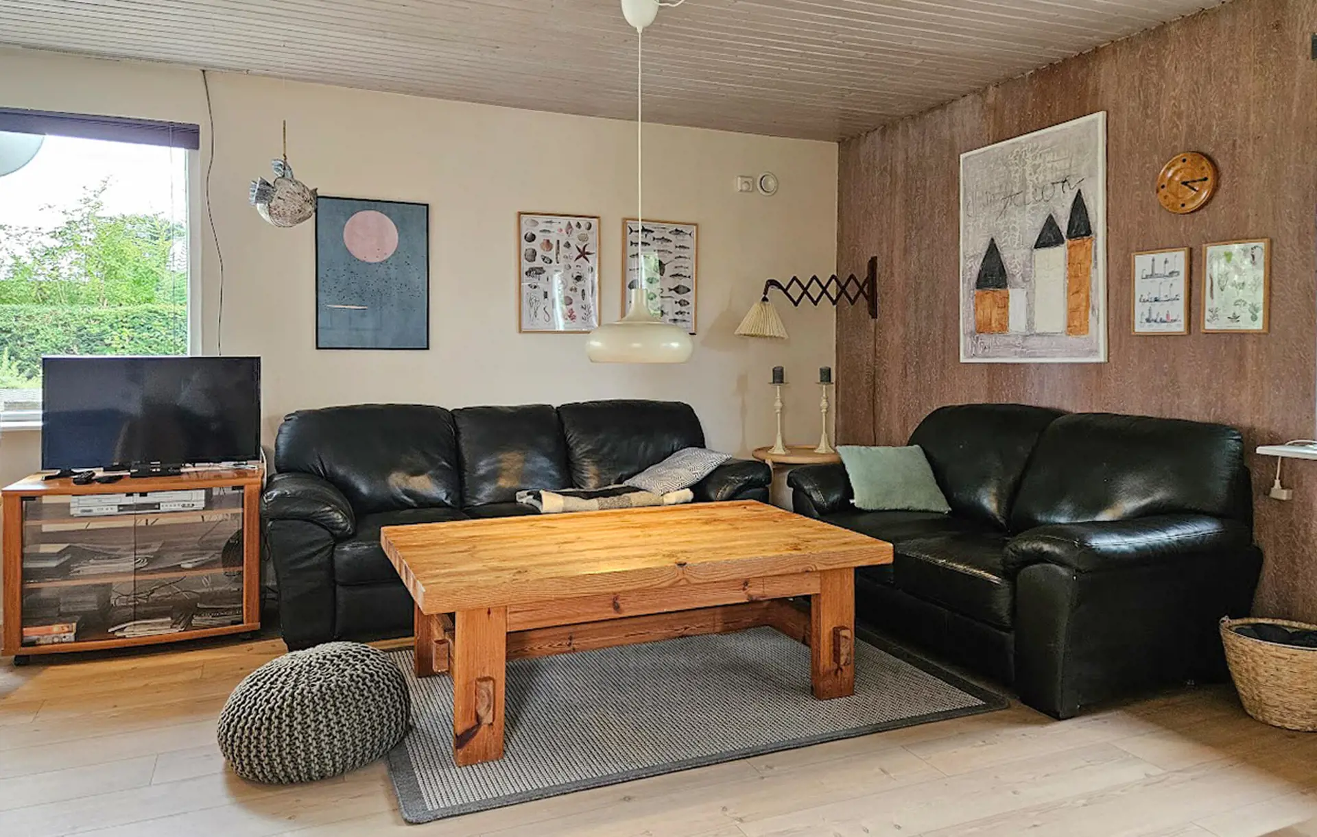 In diesem behaglichen Haus sorgen große Fenster, Holzdecken und warme Farben für eine behagliche Atmosphäre. Kommen Sie hier zur Ruhe und tanken Sie neue Energie beim Plaudern, Lesen oder Musikhören. An kühlen Tagen entzünden Sie den Kaminofen für wohlige Wärme. Die Küche ist funktional eingerichtet und bietet alles, was Sie für gemeinsame Mahlzeiten benötigen. Am großen Esstisch genießen Sie ruhige Abende, während draußen der Wind durch die Bäume rauscht.