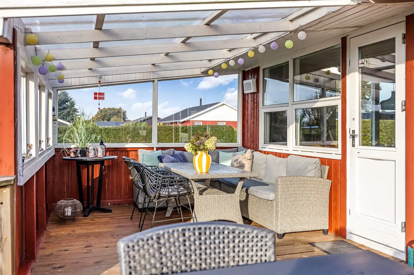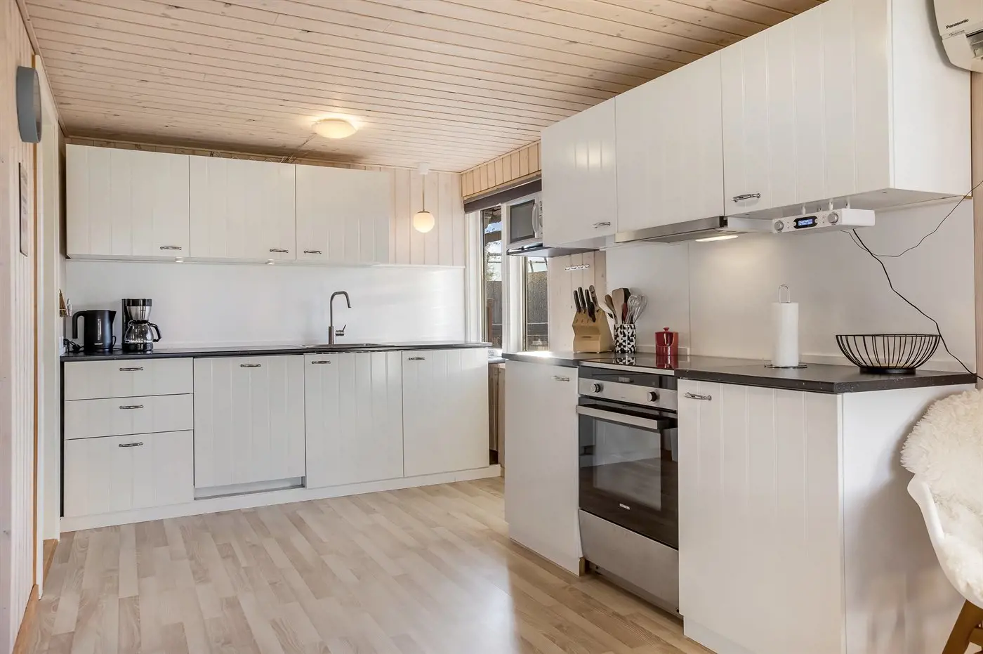 Das Haus ist hell, geräumig und gemütlich eingerichtet – und bietet Platz für bis zu sechs Personen, und die Schlafplätze sind auf drei separate Schlafzimmer verteilt. Der große Küchen- und Wohnbereich lädt zu gemeinsame Stunden und Aktivitäten ein. Von hier aus habt ihr direkten Zugang zu einer überdachten Terrasse mit einer gemütlichen Lounge-Ecke, wo ihr entspannen und viele schöne Stunden im Freien genießen könnt.