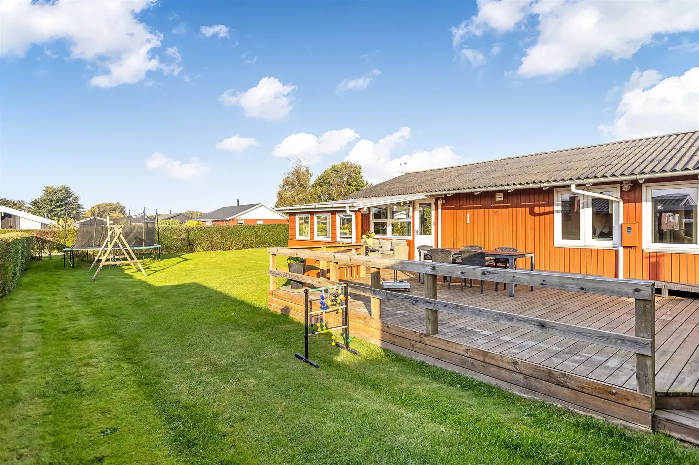 Die Ferienunterkunft liegt auf einem 682 m² großen Gartengrundstück. Die Entfernung zum Meer beträgt 500 m. Die nächste Einkaufsmöglichkeit liegt 3400 m entfernt. Es steht ein offenes Terrassenareal zur Verfügung. Außerdem gibt es überdachte Terrasse. Schaukel. Sandkasten. Trampolin. Es steht ein Grill zur Verfügung. Parkplatz auf dem Grundstück.