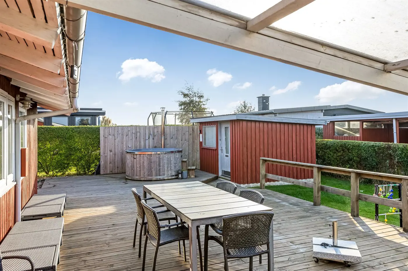 Im Garten erwartet euch eine große, offene Terrasse mit mehreren Gartenmöbeln sowie ein herrlicher Hot Tub. Einfach mit Wasser füllen, das Feuer im Ofen anzünden – und nach ein paar Stunden könnt ihr in das warme Wasser eintauchen und euch völlig entspannen. Besonders schön ist ein Bad an einem dunklen Abend unter dem klaren Sternenhimmel – ein unvergessliches Erlebnis!