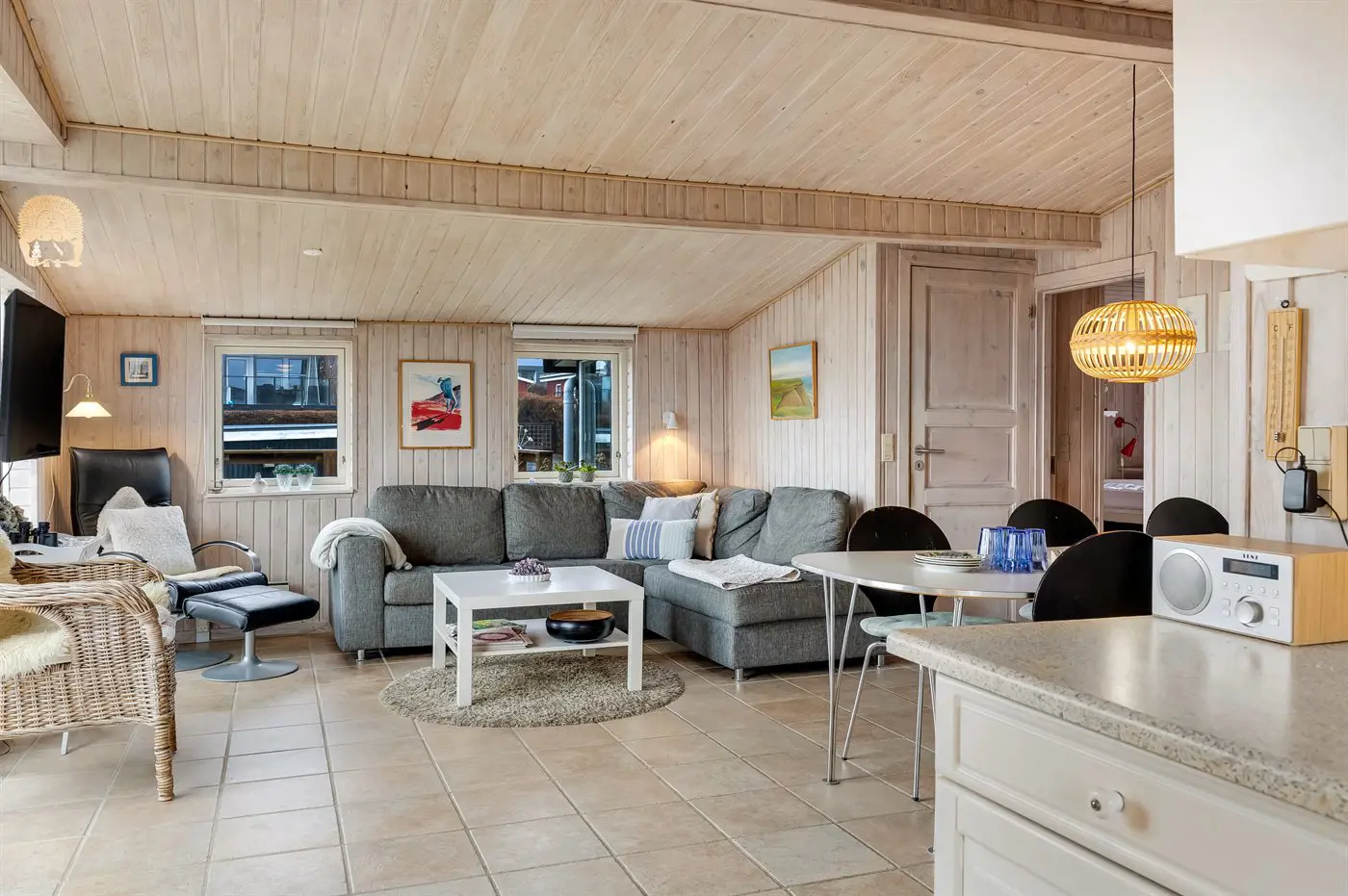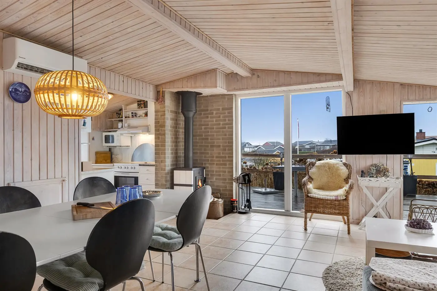 Die einladende Wohnküche ist der natürliche Treffpunkt des Hauses und bietet den Rahmen für viele schöne gemeinsame Stunden – sei es beim gemeinsamen Kochen, bei Brettspielen oder beim Entspannen in guter Gesellschaft.