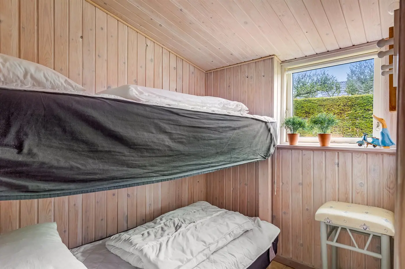 Die Schlafplätze verteilen sich auf 3 Schlafräume. 4 Schlafplätze in Doppelbetten. 2 Schlafplätze in einem Etagenbett.