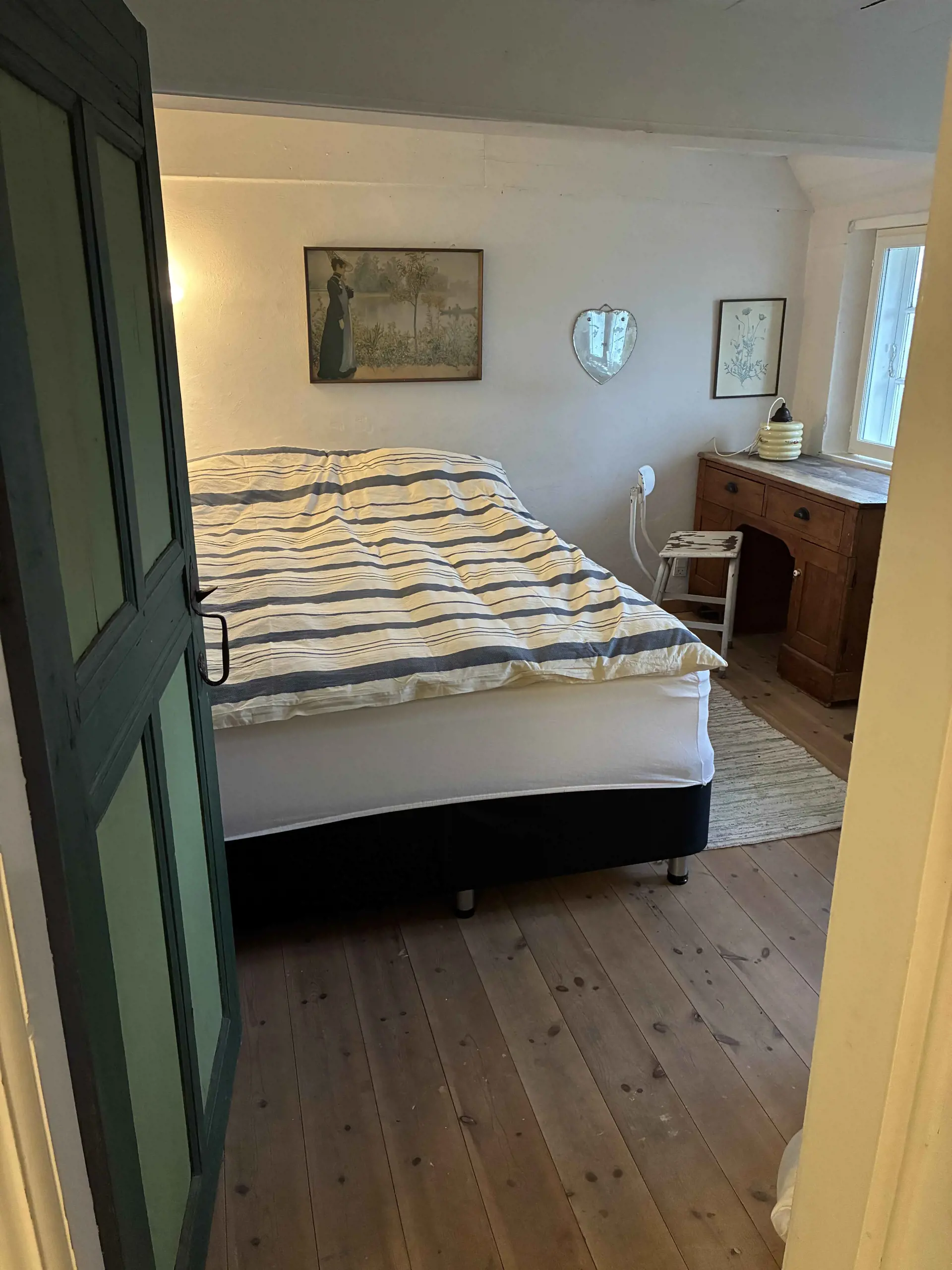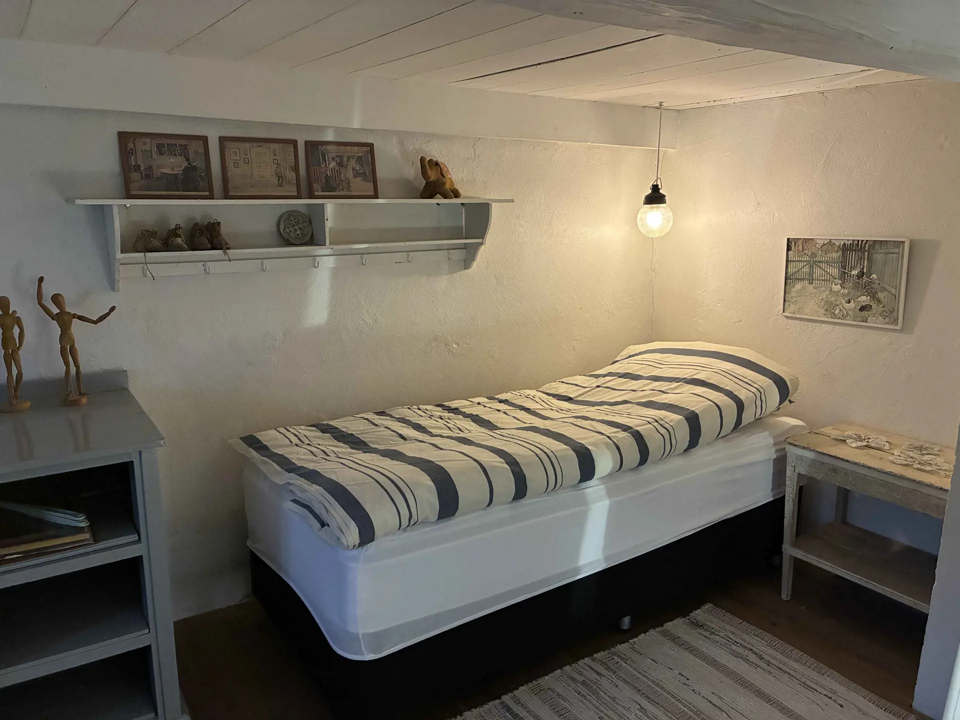 Das Haus verfügt über 2 Schlafzimmer mit insgesamt 4 Schlafplätzen. Es gibt ein kleines, älteres Badezimmer sowie eine Küche älteren Datums, die im Originalstil erhalten wurde. Die Einrichtung ist schlicht und funktional und unterstreicht den historischen Charakter.