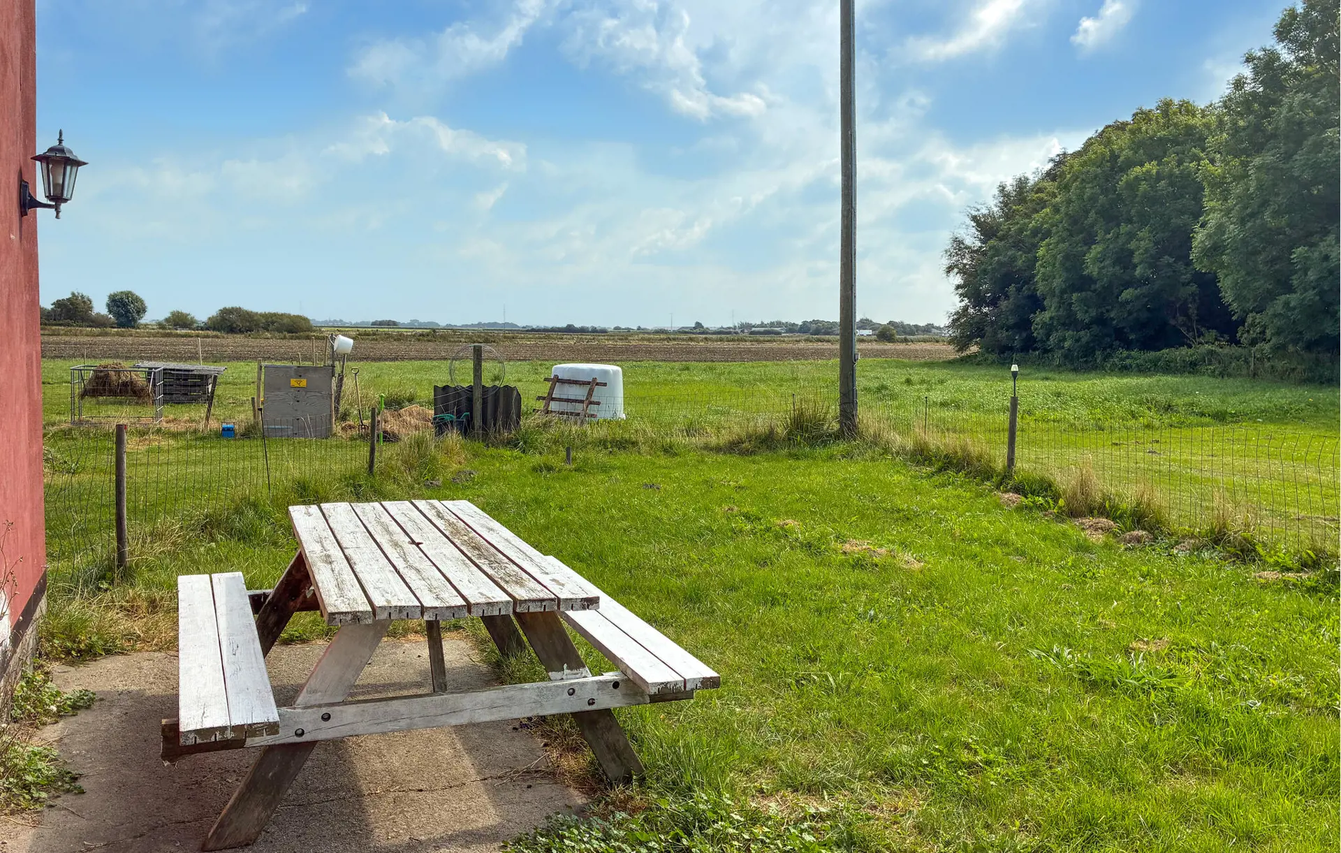 Treten Sie schon morgens mit einer duftenden Tasse Kaffee auf die Terrasse und genießen Sie den weiten Blick über die Felder. Sie sind hier mitten in der Natur, und besonders für Kinder sind die Ziegen, die gestreichelt werden können, ein echtes Erlebnis. Abends lädt die Terrasse zu einem Essen im Freien mit Blick in die untergehende Sonne ein.