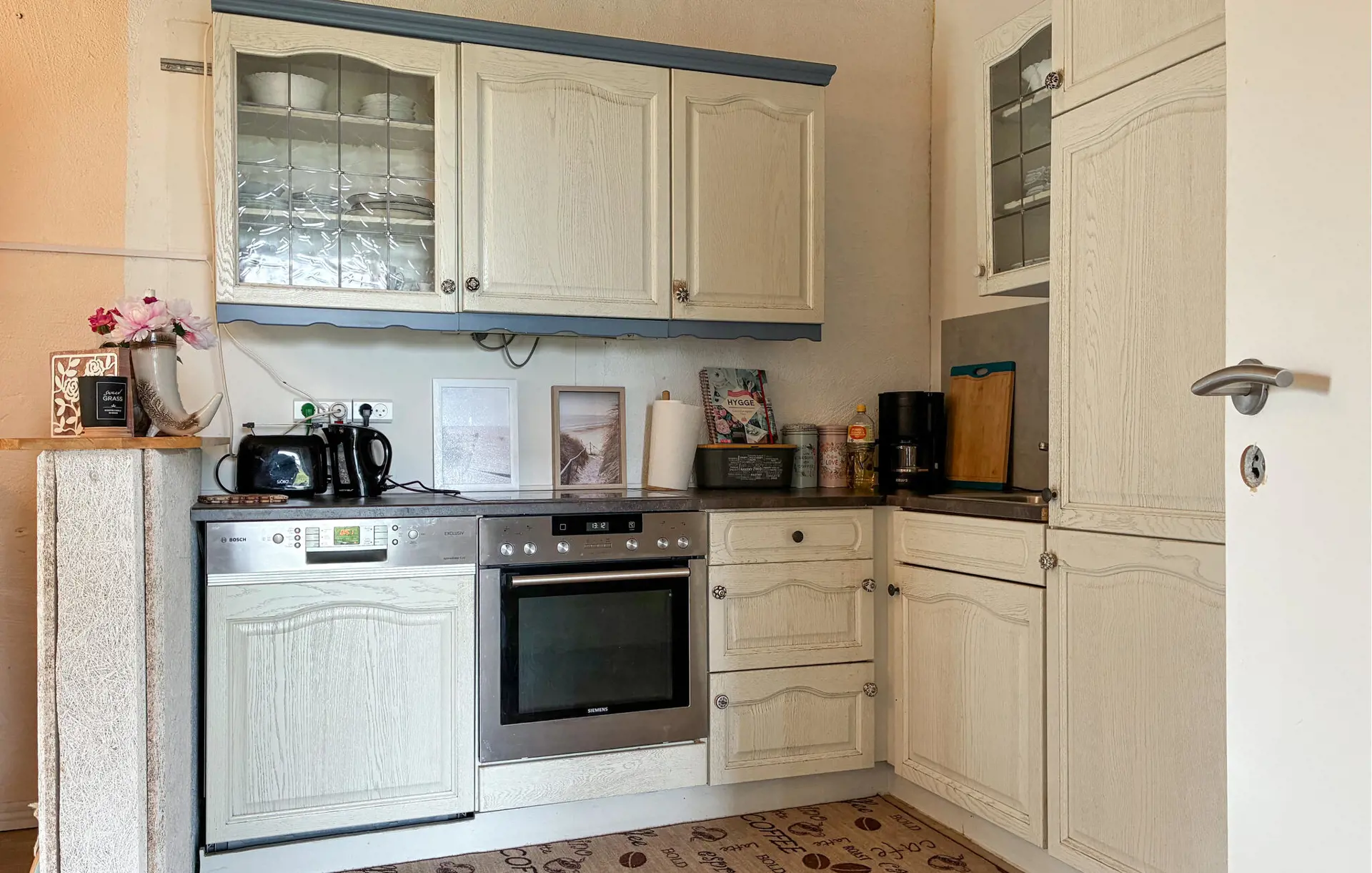 Dieses gemütliche Haus ist wie geschaffen für eine entspannte Auszeit vom Alltag. Bequeme Sofas, ein rustikaler Esstisch und eine kleine Küche schaffen eine Atmosphäre, in der Sie schnell abschalten können. Egal ob Sie entspannt Kaffee trinken oder eine leckere Mahlzeit zubereiten, hier bestimmen Sie das Tempo Ihres Tages.