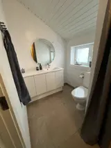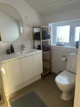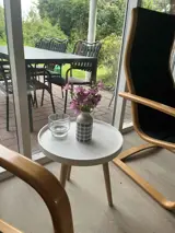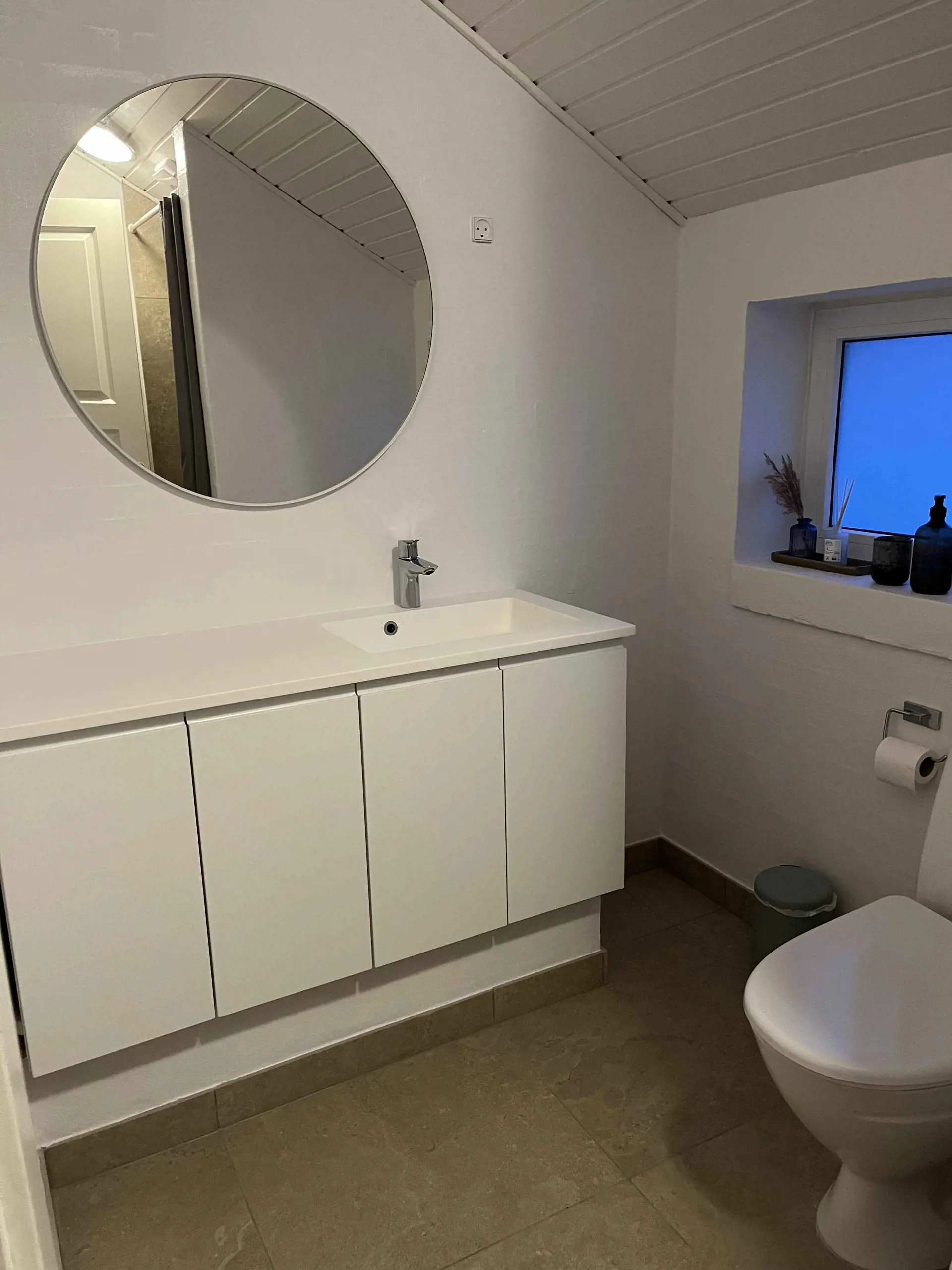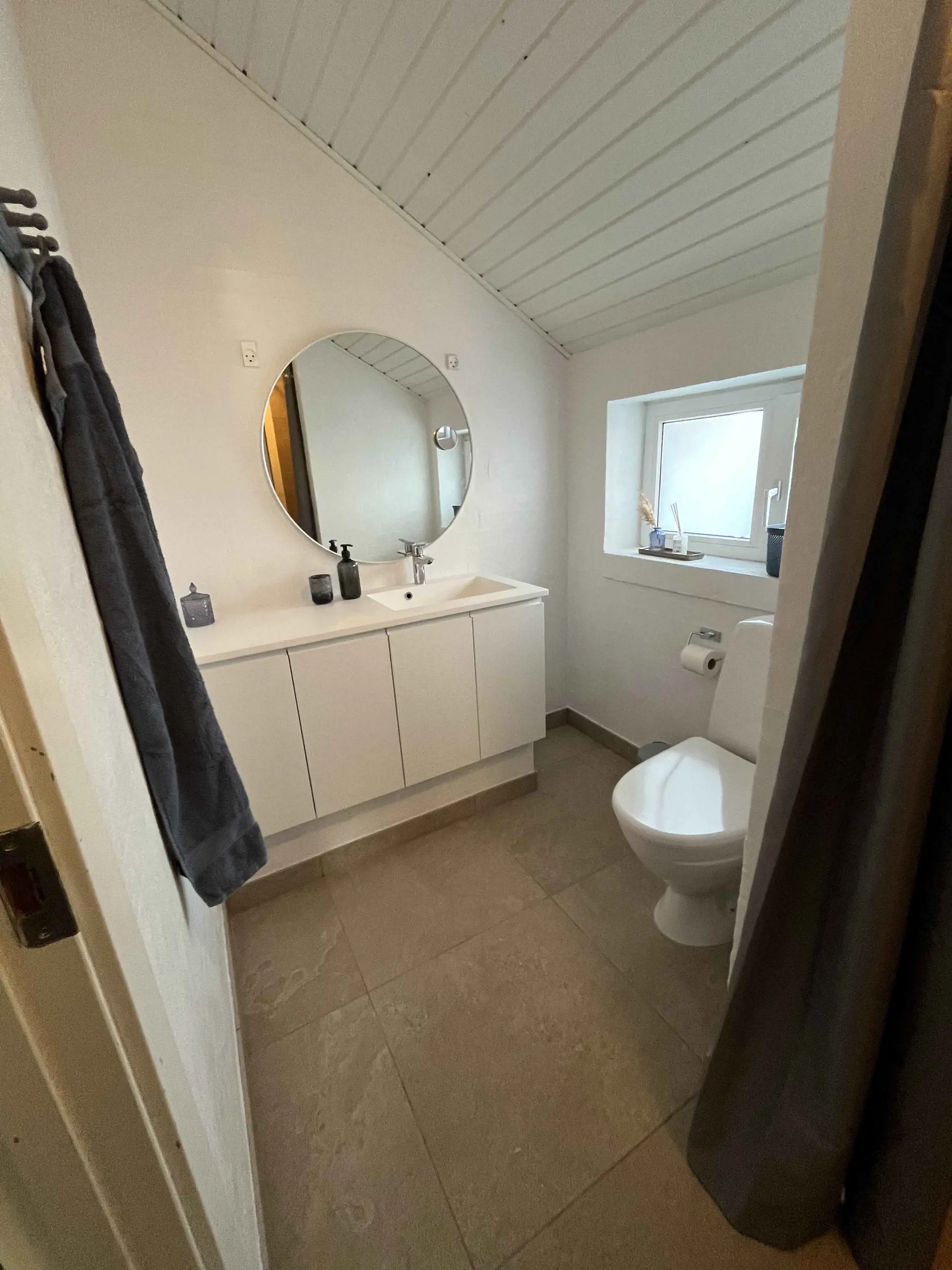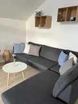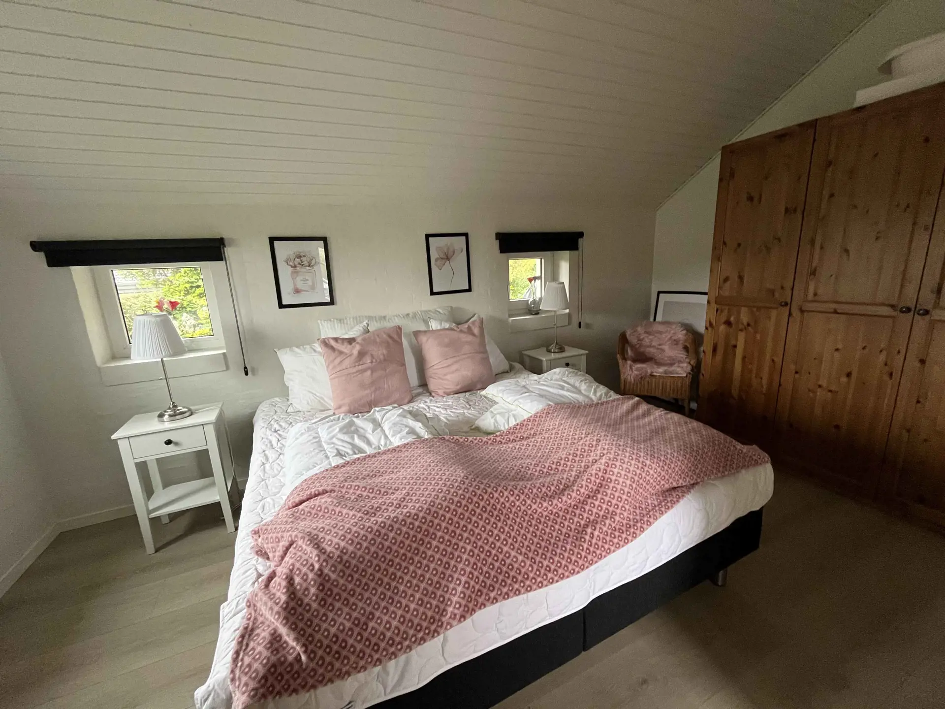Das Haus verfügt über ein helles, gemütliches Wohnzimmer mit einem neuen Kaminofen, einer Wärmepumpe, einem Essbereich und offenem Zugang zu einer gut ausgestatteten Küche. In der Küche befinden sich unter anderem eine Geschirrspülmaschine und eine Mikrowelle. Außerdem gibt es ein schönes, helles Badezimmer mit Dusche und Fußbodenheizung.