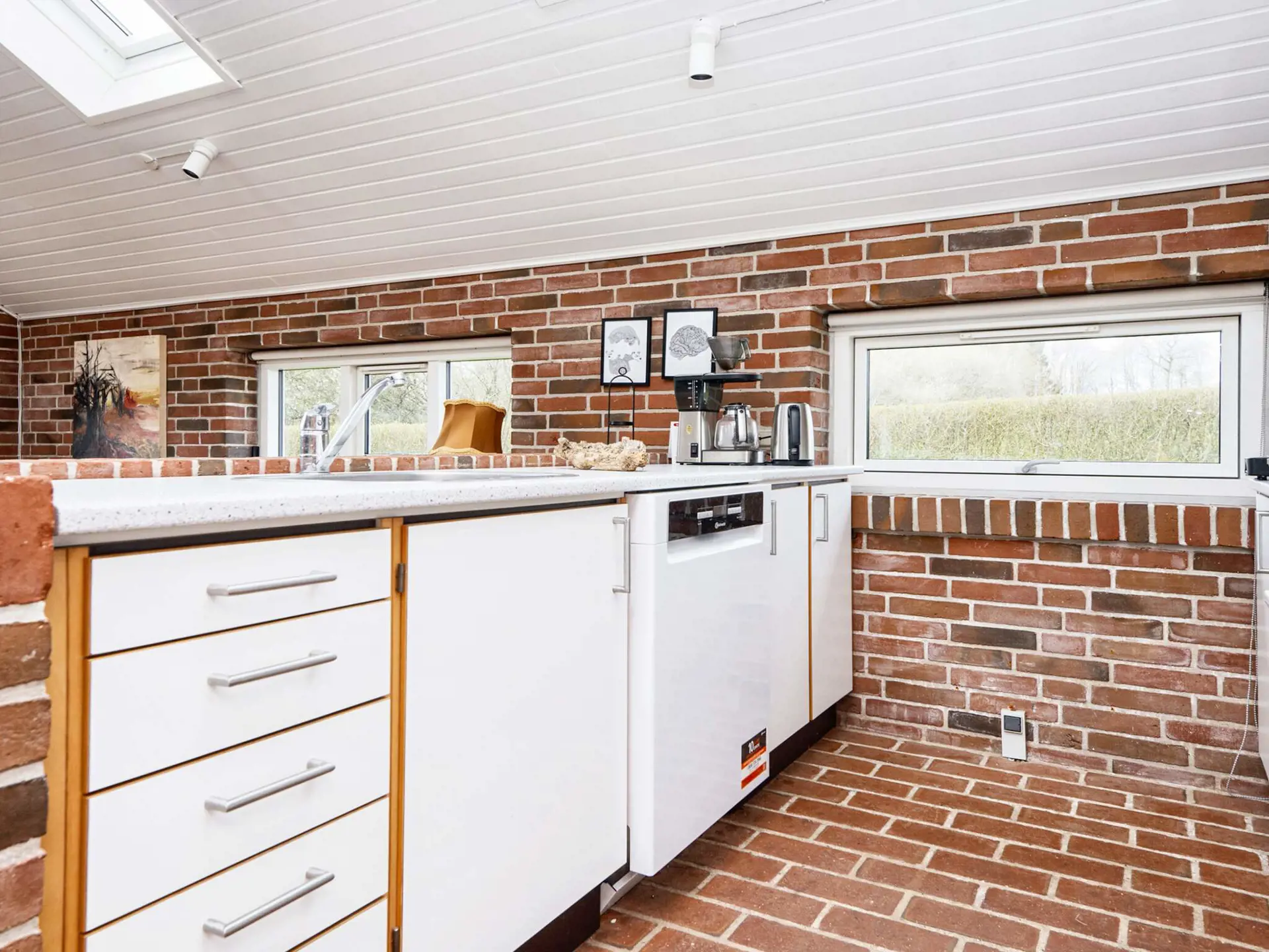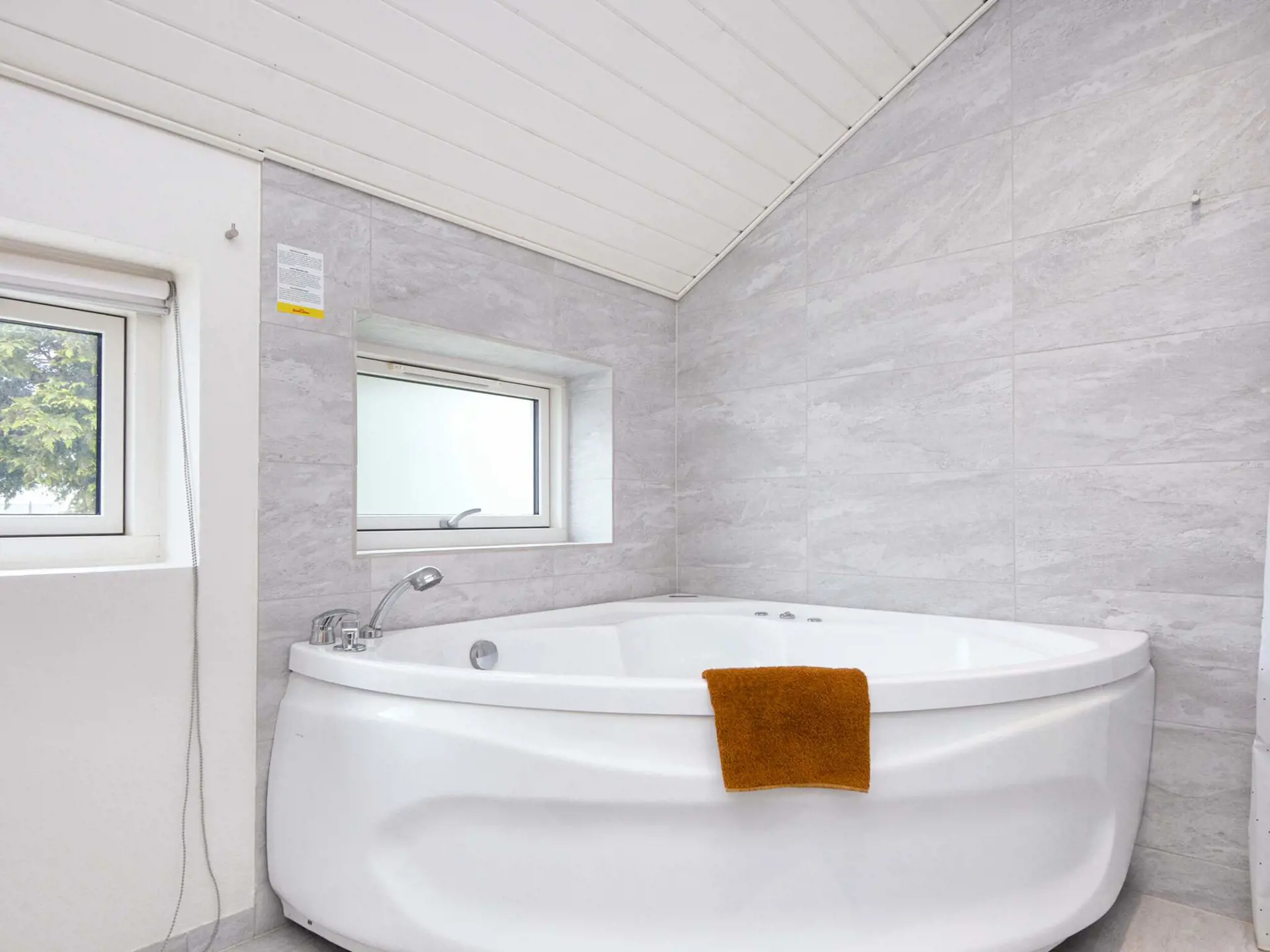 Nicht weit vom guten Badestrand bei Hvidbjerg finden Sie dieses gut ausgestattete Ferienhaus mit Whirlpool sowie schön abgeschirmtem Grundstück. Das Ferienhaus hat Dachschrägen mit Dachfenstern im Küchen-/Wohnbereich, was zur luftigen Wohnatmosphäre beiträgt. Die Böden sind rustikal gestaltet, mit Ziegelsteinen. Gutes Mobiliar. Das Bad des Hauses wurde 2023 renoviert und erweitert. Vom Wohnzimmer aus gelangt man hinaus auf die große Terrasse, auf der man entspannen kann.