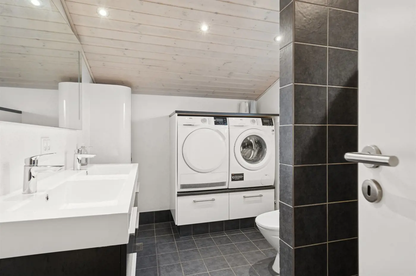 Es gibt 1 Badezimmer mit Duschnische und 2 Toiletten, davon 1 Gästetoilette. Fußbodenheizung in 1 Badezimmer.