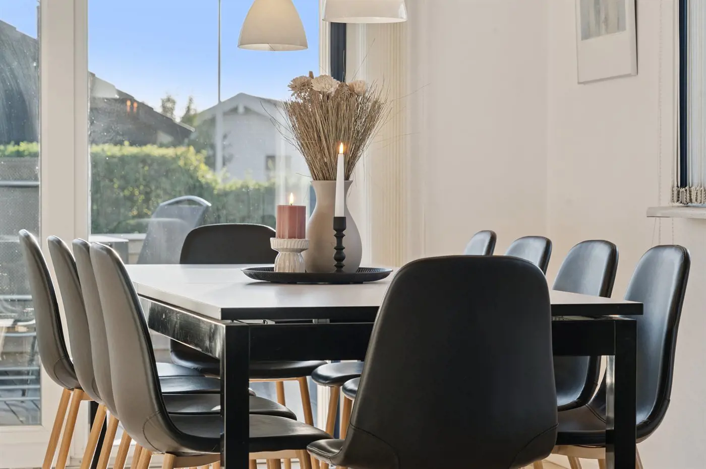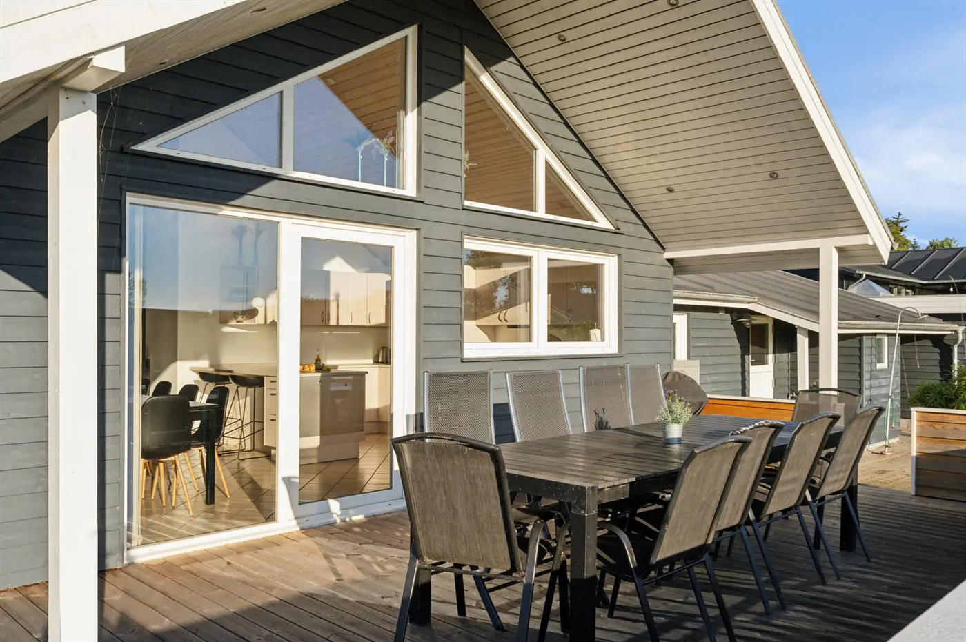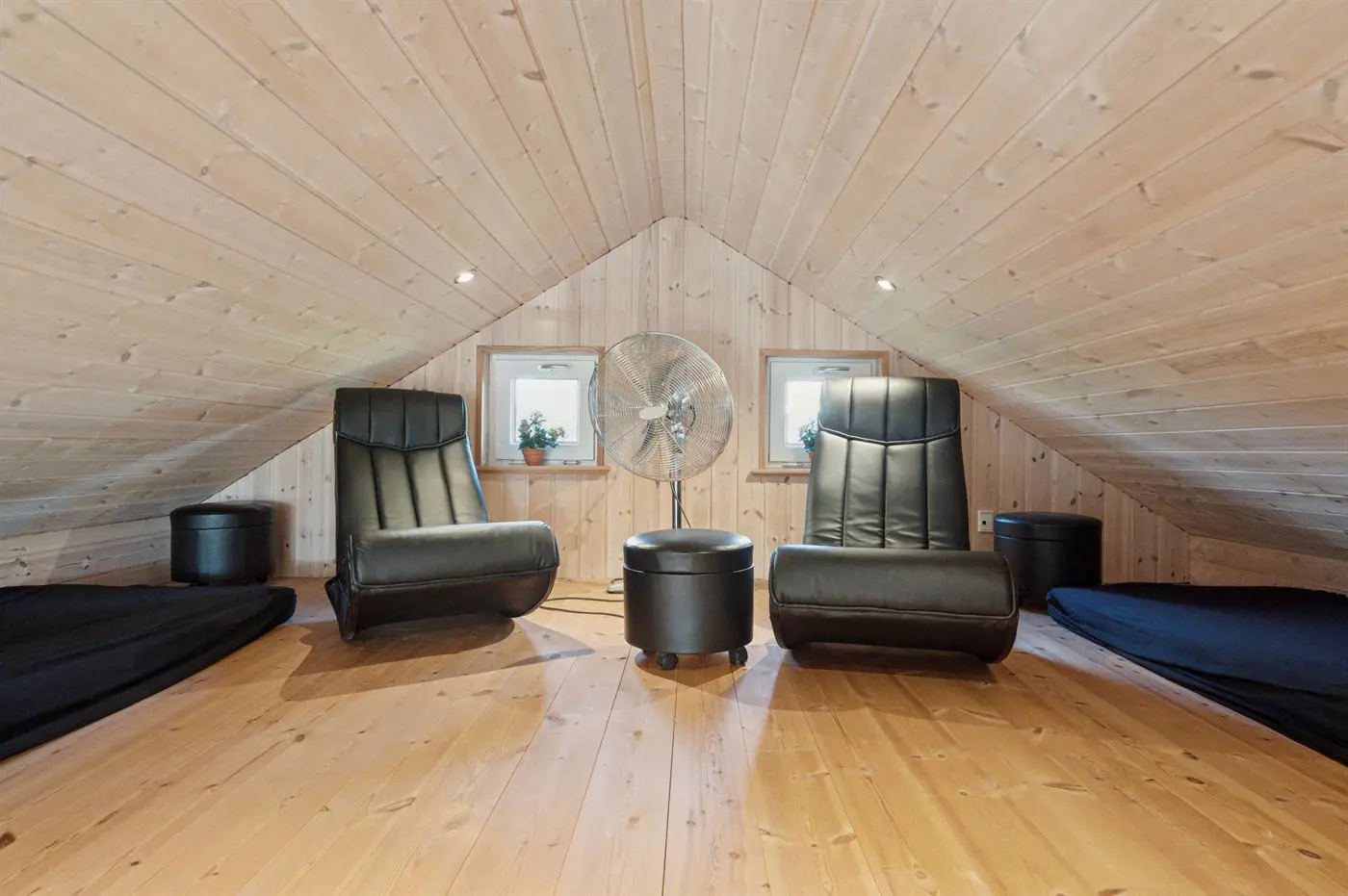 Das Haus ist in zwei separate Bereiche aufgeteilt, jeder mit eigenem Badezimmer und Küche – ideal für große Familien, wo man etwas mehr Platz benötigt. Die Einrichtung ist modern und individuell gestaltet, wobei sich ein roter Faden durch das gesamte Haus zieht. Das Haus verfügt über einen schönen, privaten Garten mit großer Holzterrasse und mehrere, vor dem Wind geschützte Ecken.