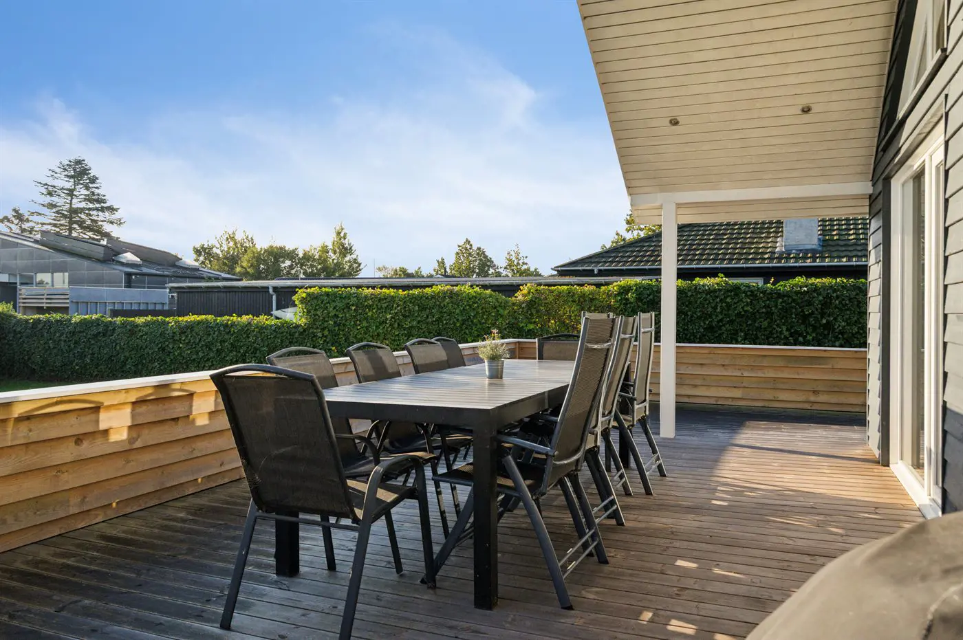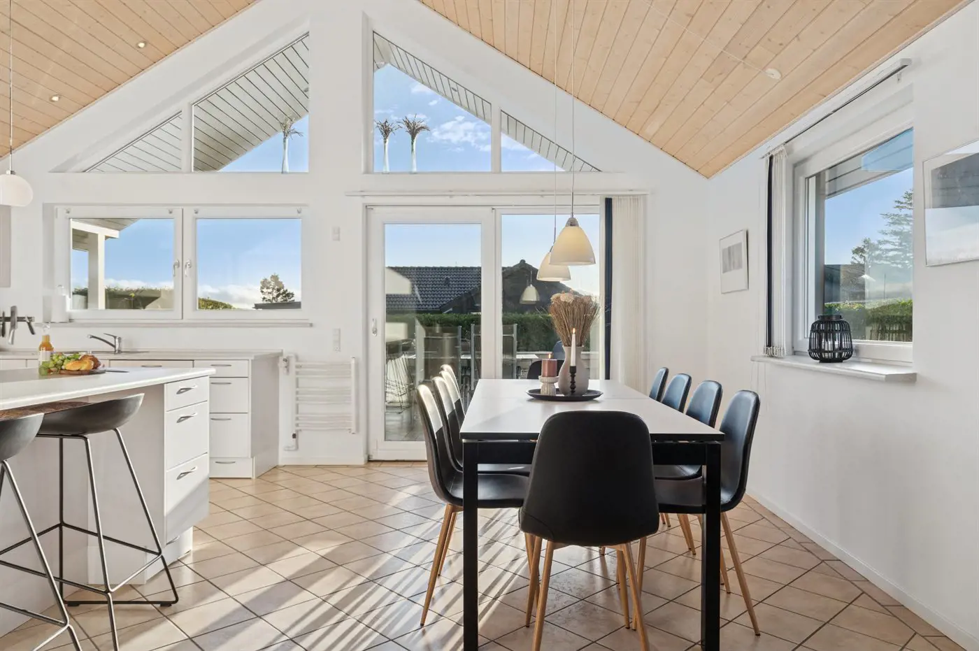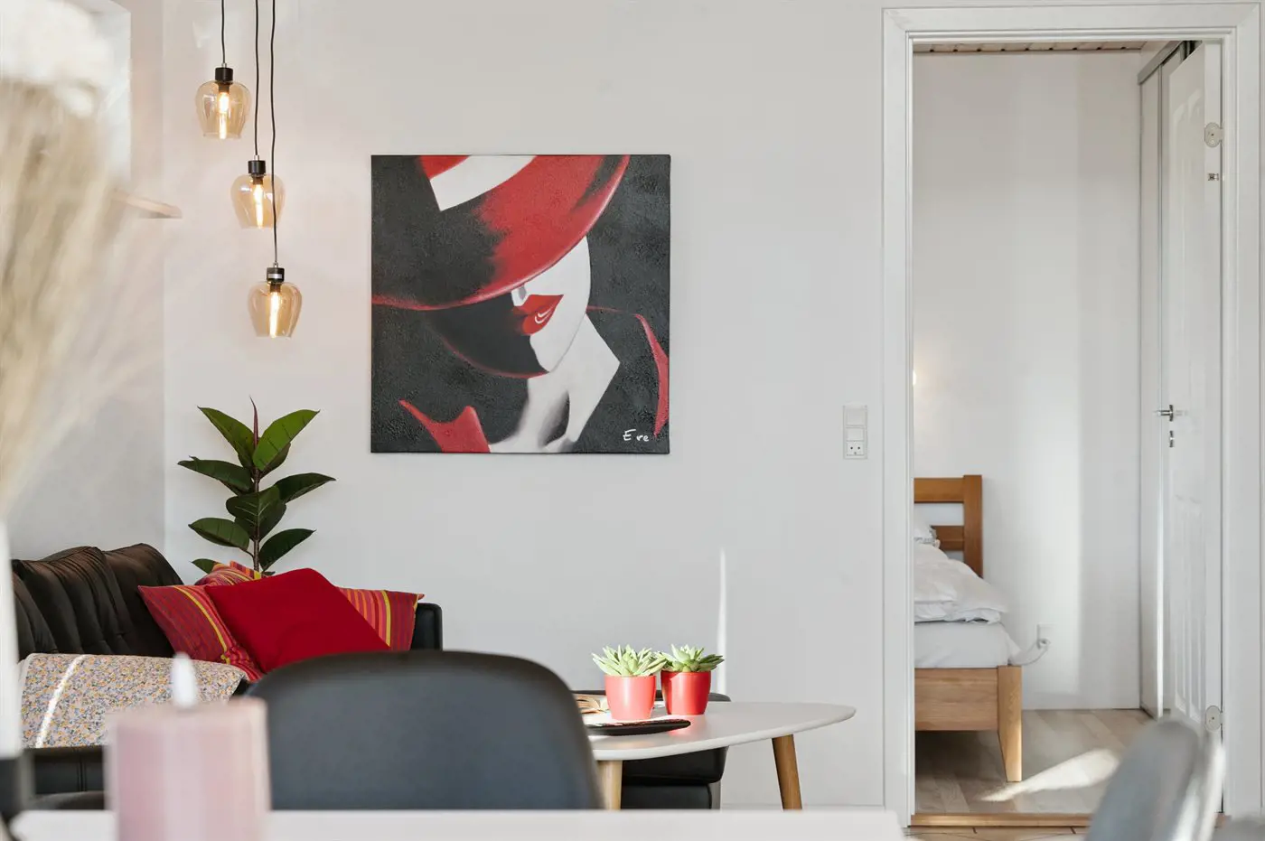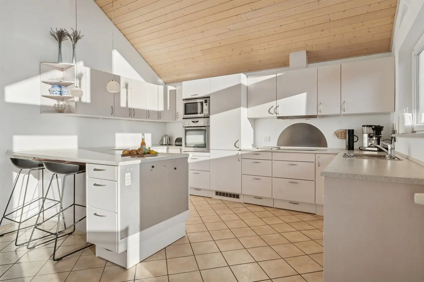 Das Haus ist in zwei separate Bereiche aufgeteilt, jeder mit eigenem Badezimmer und Küche – ideal für große Familien, wo man etwas mehr Platz benötigt. Die Einrichtung ist modern und individuell gestaltet, wobei sich ein roter Faden durch das gesamte Haus zieht. Das Haus verfügt über einen schönen, privaten Garten mit großer Holzterrasse und mehrere, vor dem Wind geschützte Ecken.
