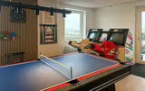 Verbringen Sie Ihre Tage im Außenbereich mit Whirlpool. Lassen Sie den Abend an der Feuerstelle ausklingen oder genießen Sie Grillabende unter freiem Himmel. Kinder freuen sich über die Schaukel und die Rutsche, während in einem Nebengebäude mit Tischtennis und Airhockey auch bei Wind und Wetter für Unterhaltung gesorgt ist.