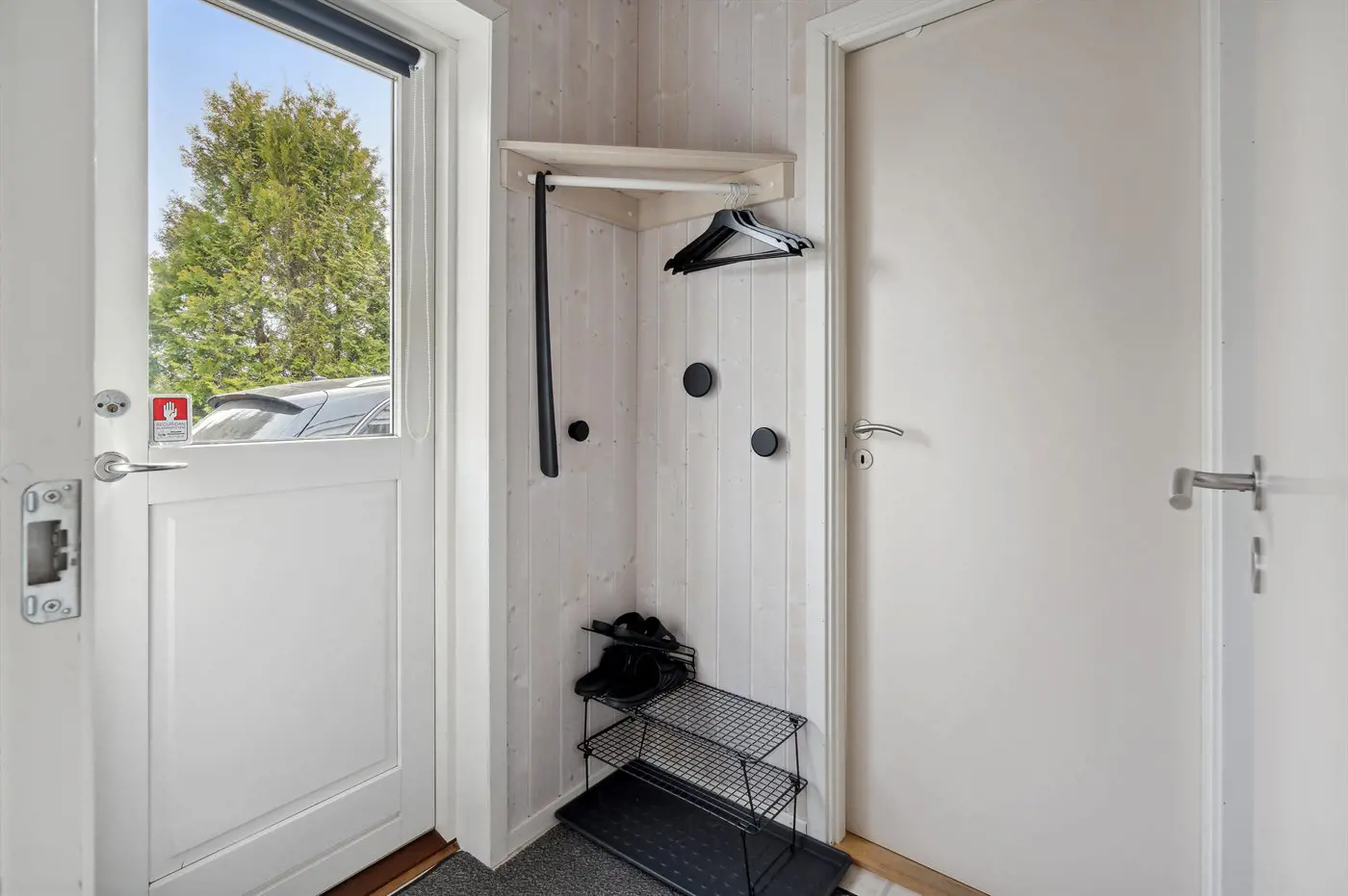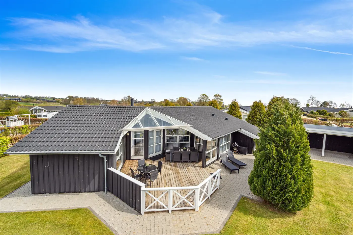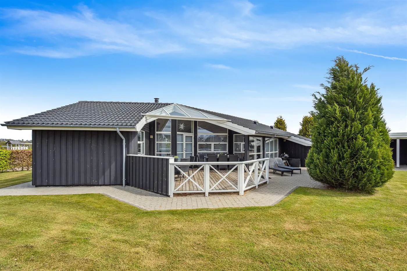 Dieses schöne Ferienhaus liegt im Ferienhausgebiet Flovt Strand – dicht an einem schönen, kinderfreundlichen Badestrand.