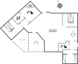 Die Schlafplätze verteilen sich auf 3 Schlafräume. 4 Schlafplätze in Doppelbetten. 2 Schlafplätze in Einzelbetten. Ferner steht ein Kinderbett zur Verfügung.