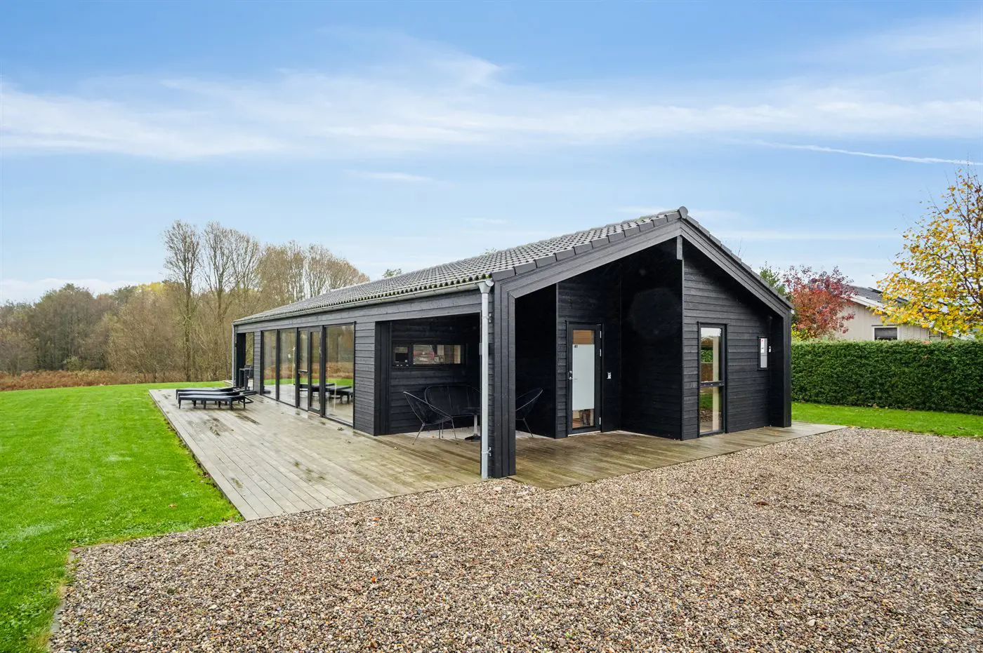 Ferienhaus im ruhigen Flovt Strand, nahe einem kinderfreundlichen Sandstrand. Das Haus wurde 2020 aus besonders hochwertigen Materialien gebaut.