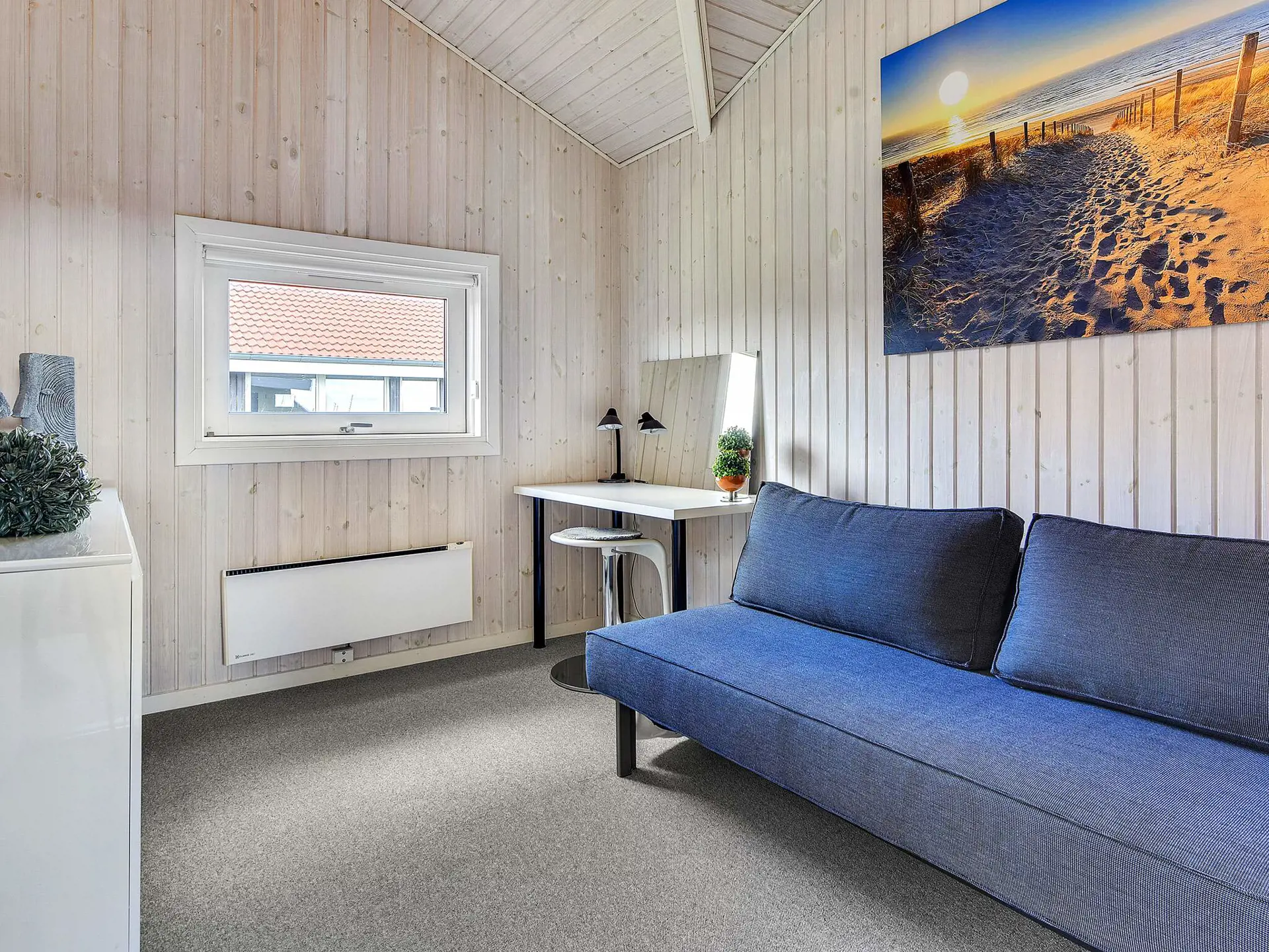 Das Ferienhaus hat große Fenster und ein helles Wohnambiente. Der offene Küchen-/Wohnbereich über Eck lädt mit seiner Ess- und Sitzecke zum Verweilen ein. Das Gespräch am Esstisch kann dabei ungestört weitergeführt werden, während die Kinder es sich vor dem Fernseher gemütlich machen. Es stehen auch einige deutsche Sender zur Auswahl. Zudem drei separate Schlafzimmer.