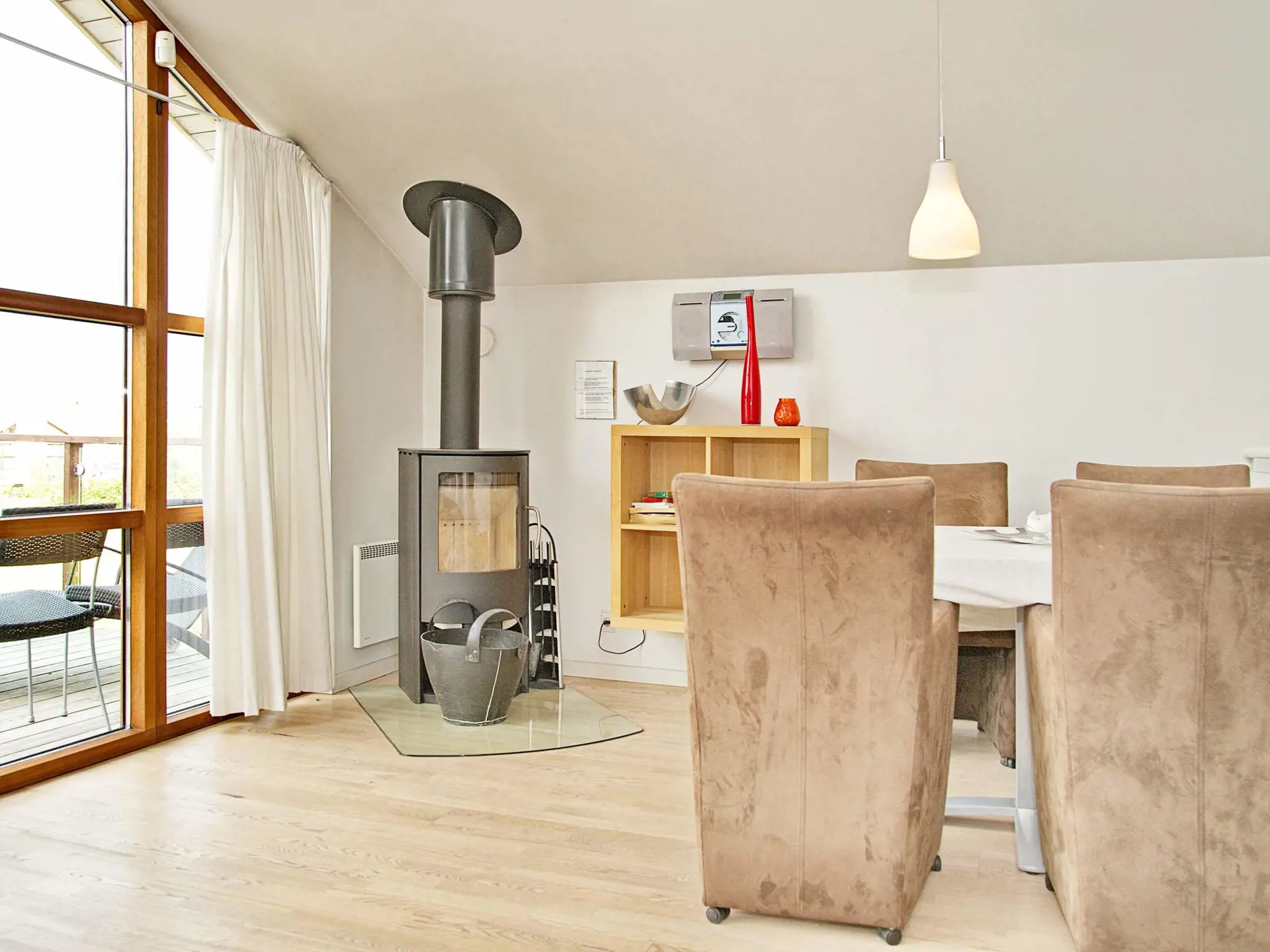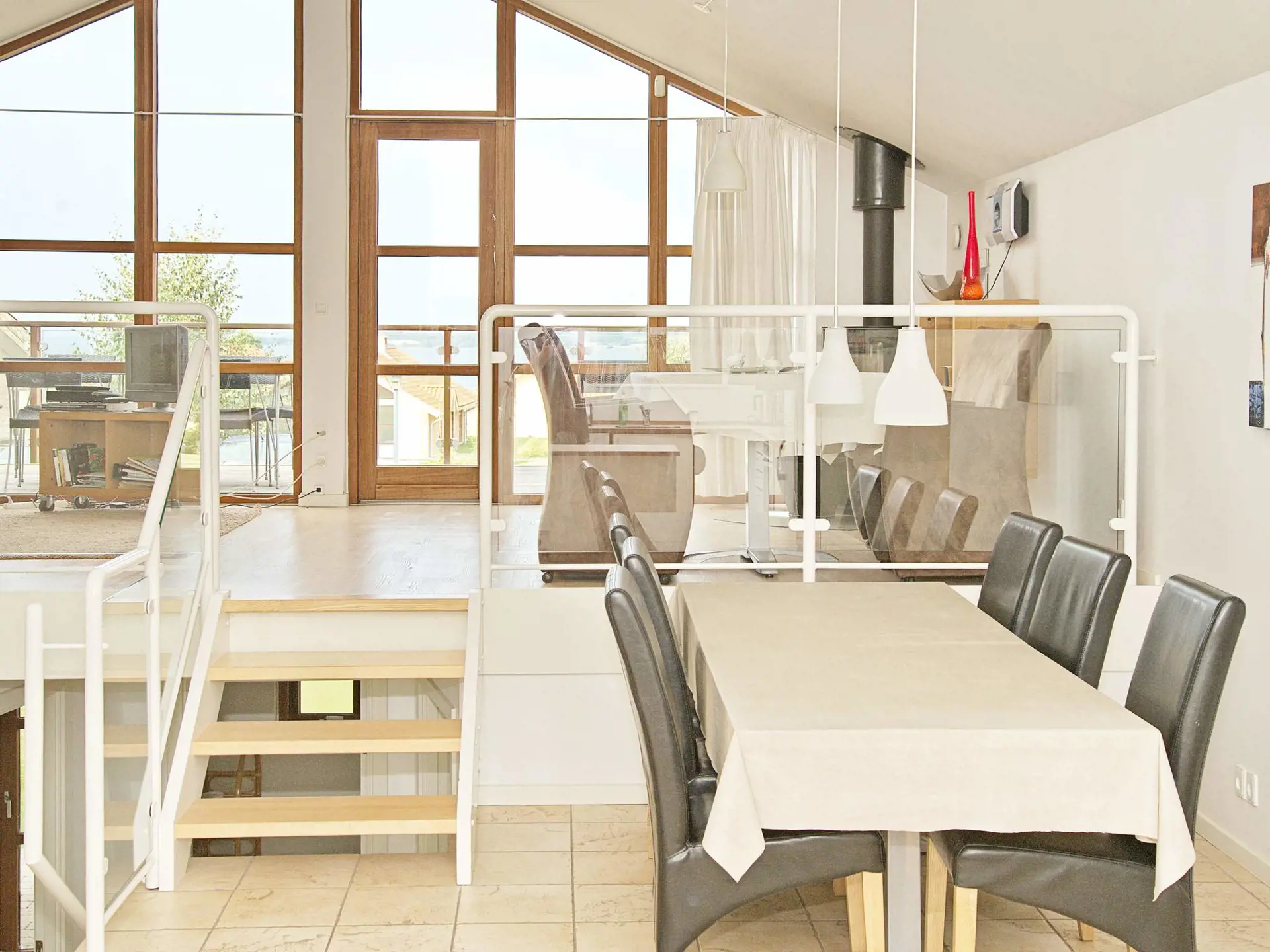In besonderer Lage zum Wasser und mit Blick auf die Flensburger Förde und den idyllischen Freizeithafen, Marina Minde, liegt dieses schöne Ferienhaus. Es wurde 2006 aus qualitativ hochwertigen Materialien als ein 1 1/2 Etagen Doppelhaus erbaut. Zu jedem Haus gehört eine überdachte und eine offene Terrasse mit Gartenmöbeln. Von dem Erdgeschoss aus haben Sie Blick auf das Wasser. Im Haus gibt es sowohl Holz- als auch erwärmten Fliesenfußboden, eine gut ausgestattete Küche mit u.a. Geschirrspüler und Cerankochfeldern und ein gemütliches Wohnzimmer mit Holzofen, Radio und Fernseher. Von hier aus gelangen Sie auf die Terrasse, wo Sie die Aussicht genießen können. In dem Badezimmer mit einem Whirlpool mit Platz für zwei Personen, Dusche und Sauna können Sie sich herrlich entspannen. In der Waschküche ist eine Waschmaschine und ein Trockner vorhanden. Das Schlafzimmer mit zwei Einzelbetten befindet sich im Erdgeschoss. Die anderen beiden Schlafzimmer sind in der Unteretage mit je einem Doppelbett und in Verbindung mit der Gästetoilette. Für Kinder gibt es einen großen Gemeinschaftsspielplatz bei der Marina.