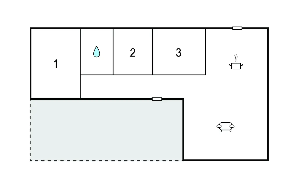Starten Sie Ihren Tag mit einem gemütlichen Frühstück im lichtdurchfluteten Wohnbereich mit Esstisch. Ob beim gemeinsamen Essen oder beim Entspannen in der komfortablen Sofaecke – hier spüren Sie sofort die ruhige Urlaubsatmosphäre. Die praktische Küche lädt zu gemeinsamen Kocherlebnissen ein und bietet alles, was Sie zum Zubereiten leckerer Urlaubsgerichte benötigen.