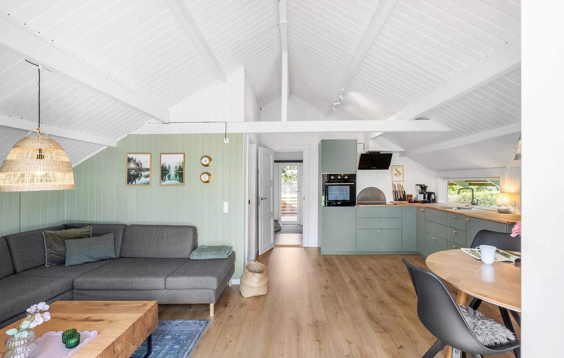Dieses behagliche Haus ist wie geschaffen für eine erholsame Auszeit vom Alltag. Eine schöne Holzoptik, dezente Farben und eine bequeme Sofalandschaft schaffen eine Atmosphäre, in der Sie schnell zur Ruhe kommen und neue Energie tanken können. Verbringen Sie entspannte Stunden beim Lesen, Plaudern oder beim gemeinsamen Kochen in der modernen Küche.